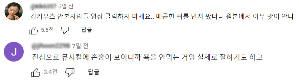 예를 들어 김풍이 등장하는 영상에는 댓글로 그가 창업했던 옾카페를 언급하며 '옾카페 문 닫는 속도로 달려왔습니다'라는 댓글이 달리기도 하고, 북한의 오물풍선이 언론에서 많이 언급되면서 '오물풍선처럼 날아왔습니다'라는 풍자적 밈이 생기기도 했어요. 그 외에도 다양하게 베리에이션 되는 댓글을 보며 사람들의 센스를 엿볼 수 있답니다.