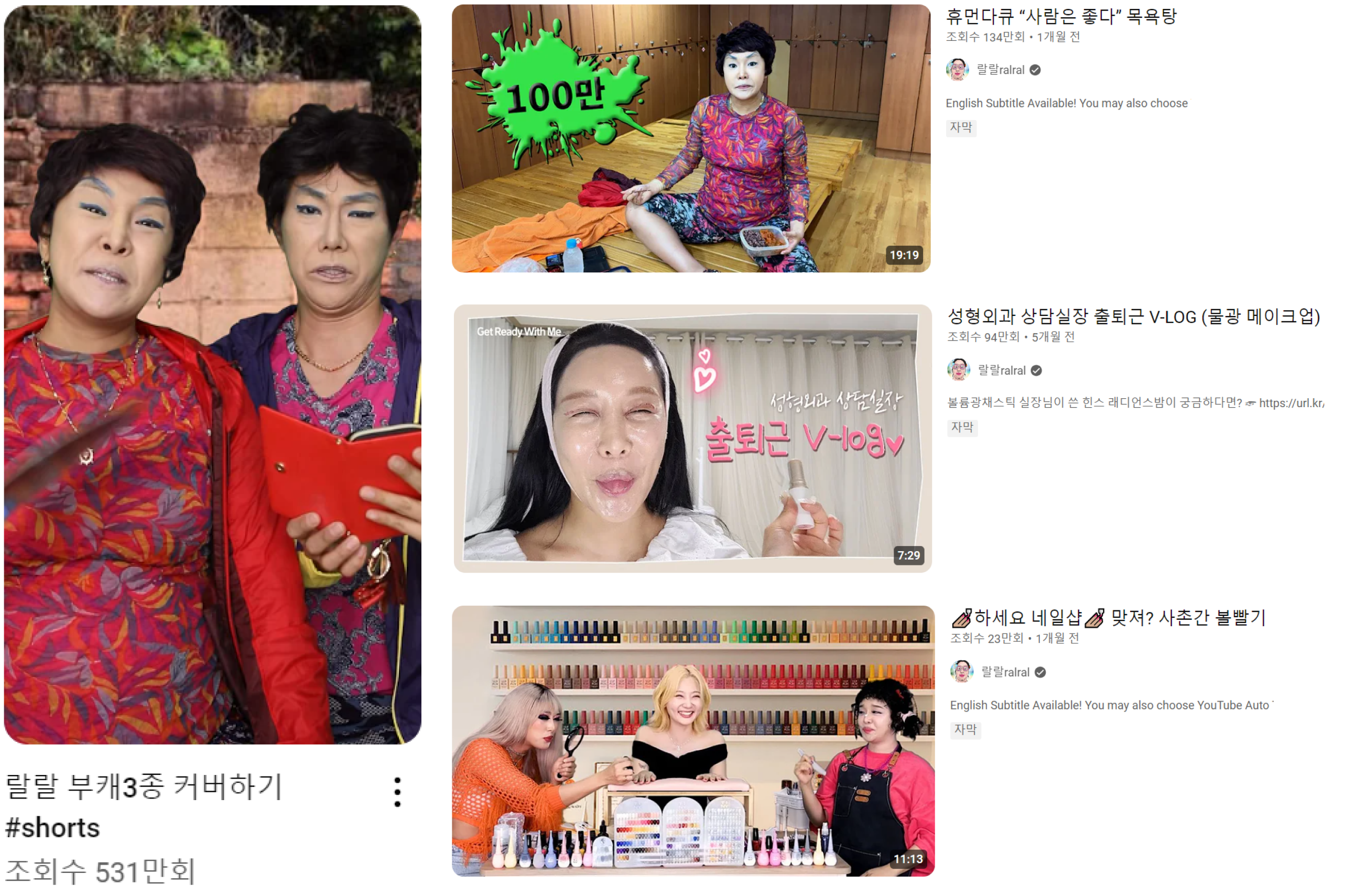 유튜버 랄랄은 여러 가지 부캐 활동을 꾸준히 펼치고 있는데요. 그 중 아줌마 캐릭터, 성형외과 상담실장 캐릭터, 네일샵 막내 캐릭터 이렇게 세 가지가 가장 큰 사랑을 받고 있답니다. 최근 랄랄과 친한 유튜버 '레오제이'가 그녀의 부캐들을 활용한 숏폼 콘텐츠를 업로드하였는데요. 해당 콘텐츠가 큰 인기를 끌며 대중들에게 랄랄의 부캐 3종이 더욱 각인되었답니다.