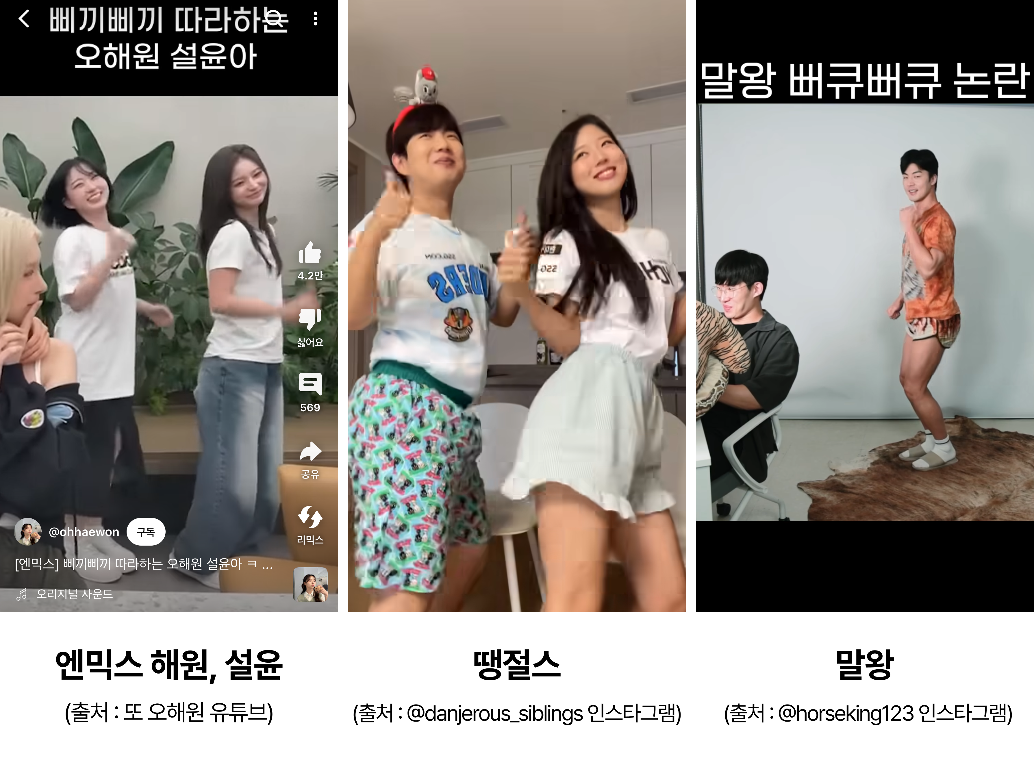 일반인뿐만 아니라 여러 유명인들도 삐끼삐끼 챌린지에 참여했는데요. 특히 평소 밈잘알로 유명한 걸그룹 엔믹스의 해원과 설윤이 해당 춤을 따라 하며 더욱 큰 화제가 되었답니다.