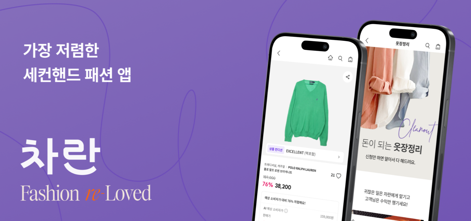 차란은 중고 의류의 판매 대행을 돕는 리커머스 서비스입니다. 입지 않는 옷을 차란 앱을 통해 맡기면, 차란에서 수거를 한 후 검수하고, 그에 맞는 적정 판매가를 설정한 후 촬영까지 해 차란 플랫폼에 올려 판매해 주죠.