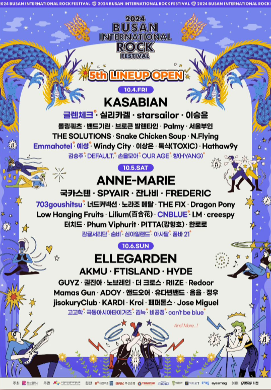 한편 이번 부산국제록페스티벌은 끝없는 라인업 공개로 '대혜자 페스티벌'이라는 반응이 많은데요. 이미 5차 라인업까지 수많은 참가 팀이 공개되었는데도 포스터에 'And More...'이라는 문구와 함께 추가 공개를 예고해 이런 댓글들이 달린 거예요. 그만큼 요즘 핫한 아티스트가 모두 모인 행사인 만큼 축제나 행사 섭외를 위해 인기 뮤지션을 파악하고 싶다면 라인업을 통해 찍먹 해봐도 좋겠습니다.