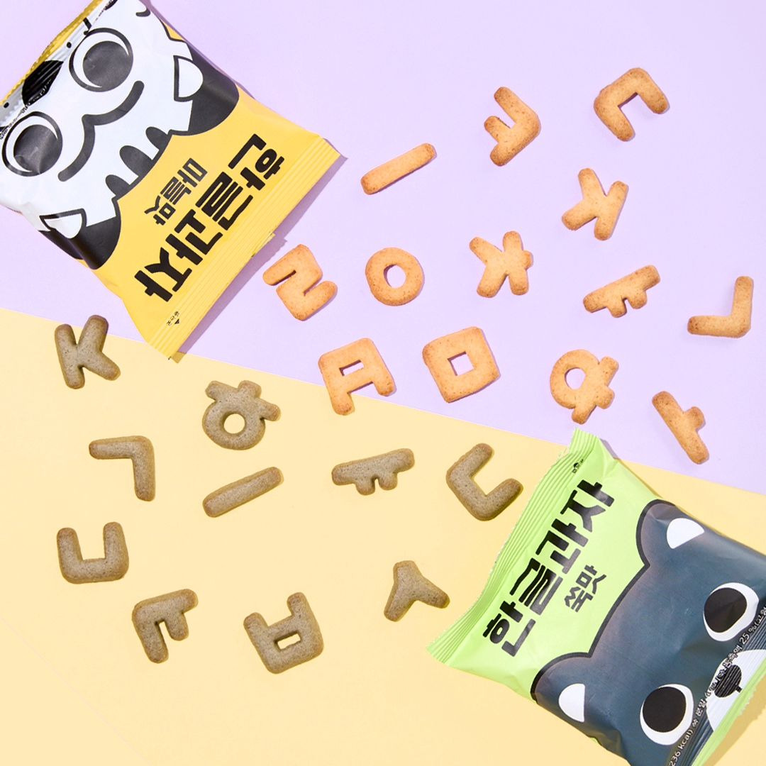 바로 작년 한글날에 두 명의 외국인이 런칭한 '한글과자' 브랜드예요. 미국 출신 방송인 타일러 라쉬와 인도 출신 사업가 니디 아그르왈이 그 주인공인데요. 최근 인스타그램에서 '외국인이 만든 한글과자'라는 콘텐츠가 눈에 띄어 알게 되었던 기억이 납니다. 브랜드의 시작은 '알파벳 모양의 과자는 있는데, 왜 한글 모양의 과자는 없을까?'라는 생각이었다고 해요. '우리말이 맛있다😋'라는 위트있는 슬로건을 갖고 있는 이 브랜드는 재료 또한 친환경 패키지와 식물성 원재료를 사용한다고 해 더 의미있답니다. 단군신화에 영감을 받아 '마늘맛', '쑥맛' 제품을 출시하는 등 한국인보다 더 한국에 대한 사랑이 느껴지는 특별한 브랜드인 것 같아요.