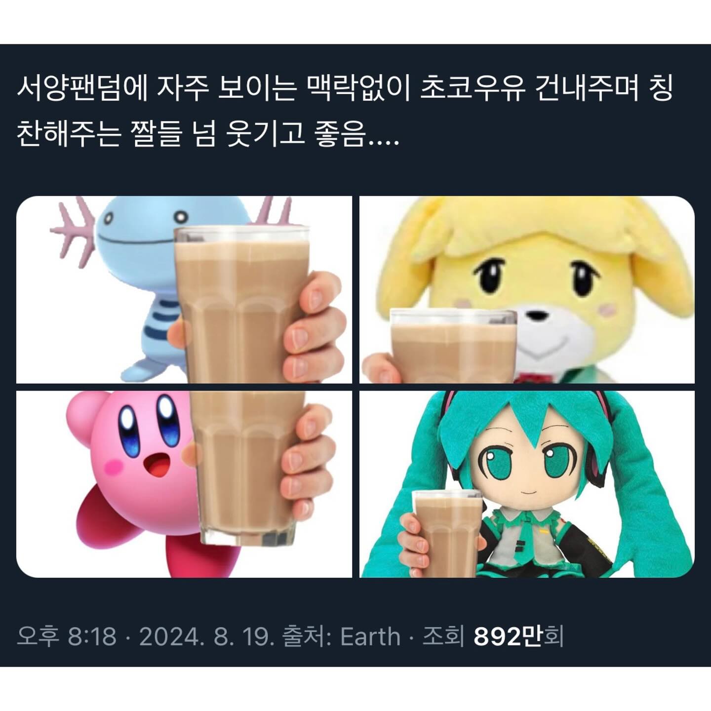 요즘 SNS에서 반응을 이끄는 콘텐츠의 공통점이 바로 이런 '무해하고 평화로운 것'이랍니다. 힐링 게임 '동물의 숲' 짤이나 플레이리스트가 활발히 공유되고, 맥락없이 귀여운 짤과 함께 초코우유를 건네는 짤이 유행하죠. 이렇듯 Z세대의 취향에 딱 맞는 센스 있는 기념일을 맞아 소통하는 콘텐츠를 기획해 보셔도 좋겠죠?