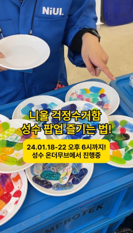 니울은 찐팬인 '니울러'들과의 소통과 유대감으로 함께 성장했어요. 처음엔 병뚜껑 수량이 많지 않아 직접 플로깅을 하거나, 식당에 찾아가 병뚜껑을 받아오기, 고객 대상으로 병뚜껑 캠페인을 열기 등을 통해 키링을 제작을 했었는데, 이제는 많은 분들이 병뚜껑 지원을 해주셔 원활하게 제작을 하고 있다고 해요.