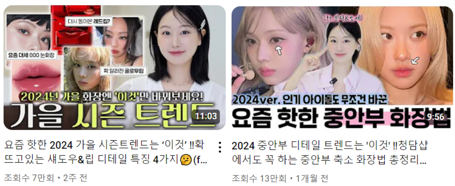 실제 연예인들의 화장법 변화를 시즌별로 분석해서 포인트를 뽑아주시는데요. 단순히 '요즘은 이런 화장이 많이 보입니다'에서 그치는 게 아니라, '이전 트렌드는 이러했는데 현재는 이렇게 바뀌었다'는 인사이트를 주기도 하고요. 일반인은 모를 것 같은 한 끗 차이를 알려줘서 뷰티 꿀팁까지 얻어갈 수 있어요. 그리고 가장 좋은 것은 이런 트렌드 변화에 맞춰서 화장할 수 있게끔 뷰티 제품들을 추천해 줘서 아는 것에서 그치지 않고 직접 따라 할 수 있게 도와준답니다.