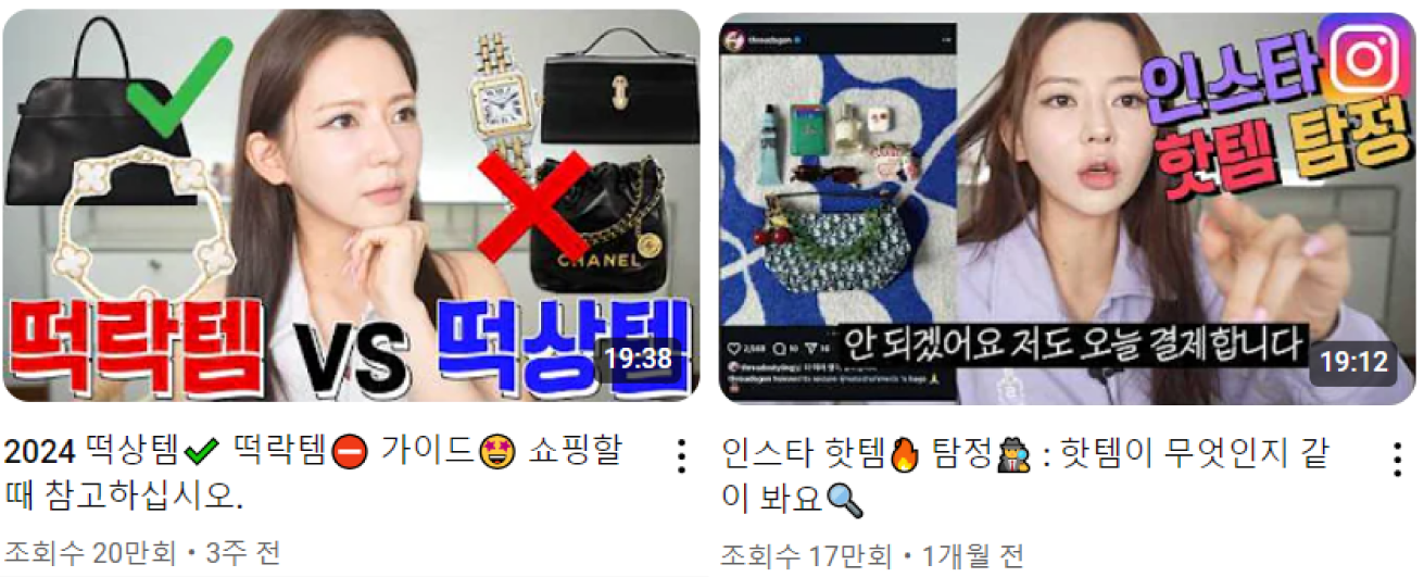하지만 이 채널은 뷰티만 다루는 것이 아니라 명품, 패션 등 전반적인 핫템들에 대해 다루는데요. 특히 국내에서 잘 알기 어려운 해외 핫템 트렌드를 알기 좋아서 꼭 소개하고 싶었어요. 리뷰에 강한 유튜버이다 보니 직접 핫한 아이템들을 구매해서 후기를 남기는 콘텐츠가 많고요. 핀터레스트나 외국 SNS를 함께 보며 핫템을 발굴해 내는 콘텐츠도 저는 즐겨 보고 있답니다.