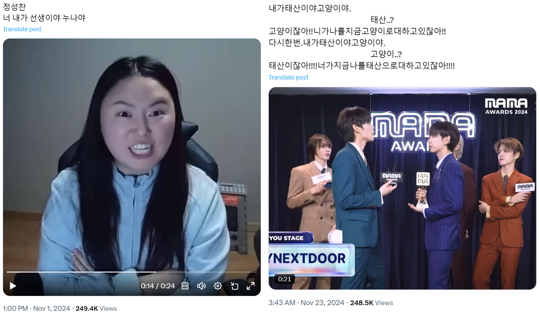 '내가 선생이야 누나야' 밈이 아이돌 팬들 사이에서 유행하자 시상식 MAMA의 공식 영상에서 보이그룹 '보이넥스트도어'가 이 밈을 직접 패러디하기도 했어요. 요즘 얼마나 돌판에서 이 밈이 핫한지 감이 오시죠?