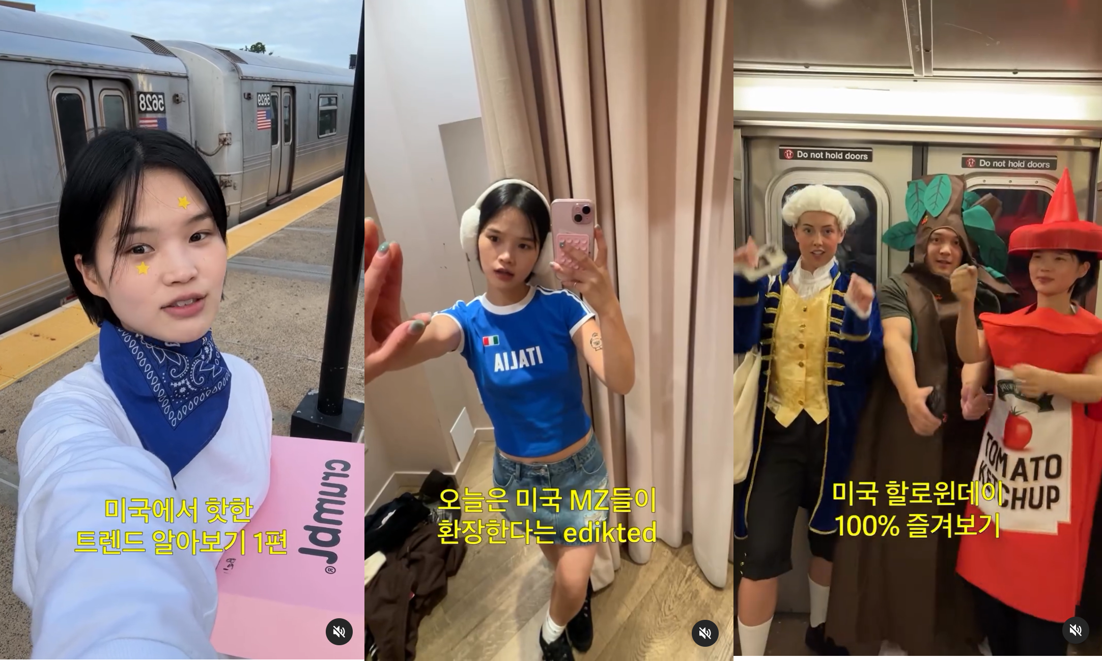 편집도 릴스 형식에 맞게 스피디하게 구성하고 중간중간 귀여운 추임새를 넣어서 지루할 틈이 없는 것도 떡상 포인트 중 하나에요. 콘텐츠에서는 영어 공부만 하는 게 아니라 요즘 미국에서 핫한 음식, 패션 브랜드 등을 소개해줘서 미국 트렌드를 알기에도 좋답니다.