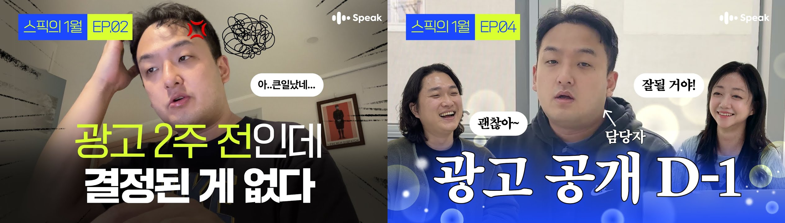 스픽은 캠페인 정식 오픈에 앞서, 유튜브 채널에 ‘스픽의 1월’이라는 비하인드 콘텐츠를 공개했습니다. 이 영상은 마케팅 담당자들이 캠페인을 준비하며 아이디어를 구상하고 실행하는 과정을 솔직하게 담아냈는데요. 캠페인의 완성된 결과만 접하는 것과 달리, 스픽은 그 이면의 치열한 준비 과정을 보여줌으로써 진정성과 노력을 강조하였어요.