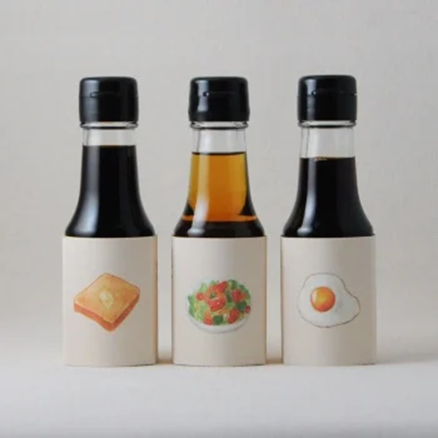 일본의 간장 브랜드 장인 간장(職人醤油)은 간장과 잘 어울리는 요리들을 일러스트로 표현해 패키지 디자인에 담아냈습니다. 이런 디자인은 단순히 예쁘기만 한 것이 아니라, 소비자 입장에서 "이 간장은 어떤 요리에 잘 어울릴까?"라는 고민을 명확히 해결해 주죠.