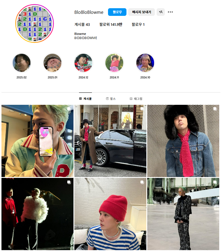 그리고 요즘은 셀럽의 부캐(부 캐릭터) 전성시대잖아요? 더 나아가 부계정을 활용해 팬과 소통하는 사례도 증가하고 있습니다. 지드래곤도 부계정(@8lo8lo8lowme)을 운영하고 있으며, 가수 존박도 부캐 겸 부계정(@johnorpark)을 통해 다양한 영어 팁을 공유하고 있어요. 이 외에도 NCT 마크의 솔로 활동 및 곡 작업과 관련된 사진을 올리는 부계정(@r_e__m___ ), 레드벨벳 슬기의 끄적끄적 취미 공간인 부계정(@by.sseulgi) 등 다양한 셀럽이 다양한 방식으로 부계정을 운영하고 있죠.