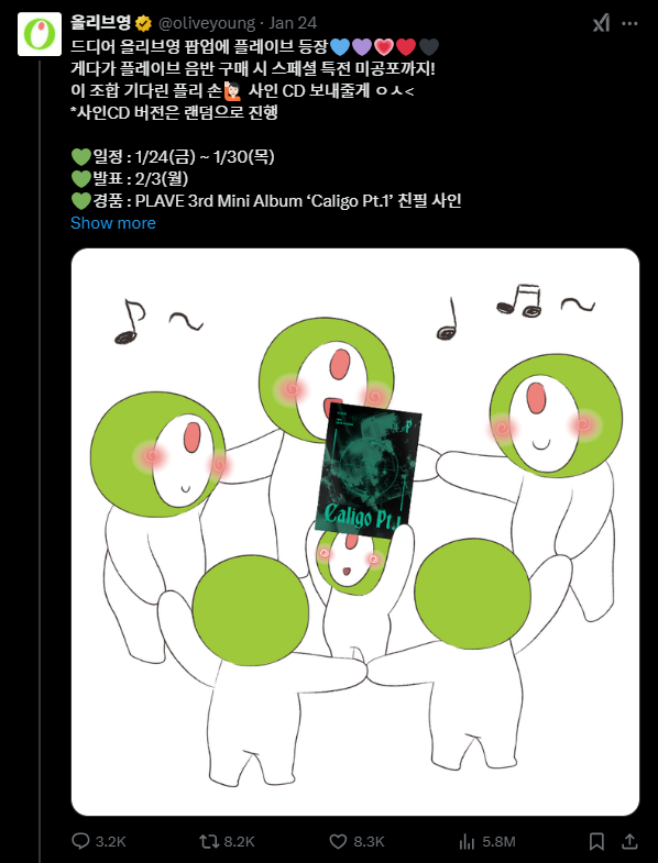 팬들의 주접 트윗을 인용하거나, 아티스트가 올리브영을 언급했을 때 이를 놓치지 않고 적극적으로 반응하고 있습니다. 또한, 팬덤을 겨냥한 다양한 이벤트를 통해 팬들을 올리브영의 팬 ‘올갱이’로 만들고 있죠.