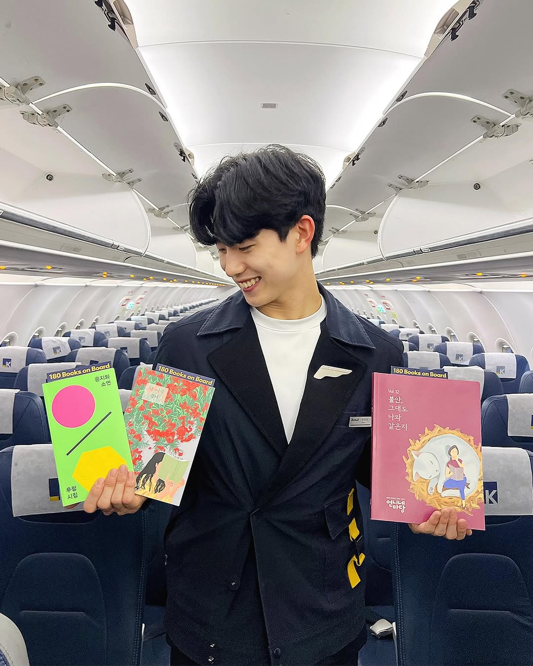고객의 반응이 뜨겁자, 2022년에는 작사가 김이나 씨와의 협업을 진행했어요. 이착륙 시 김이나 씨가 작사한 음악들로 큐레이션 된 bgm을 재생하는 데에 더해, 저서 '보통의 언어들'을 기내에 배치해 독서 경험까지 제공했죠. 이는 당해 10월 진행했던 '북스 온 보드' 캠페인의 연장선에서 진행됐는데요. 한달 간 독립서점 전문 북 스토어 '다시서점'과 함께 180개의 좌석마다 다양한 독립 출판물을 배치한 거랍니다. 이는 잠시나마 '비행기 모드'를 통해 세상과 단절되는 비행기 안이 독서에 몰입하기 가장 좋은 순간이라는 아이디어에서 착안했다고 해요.