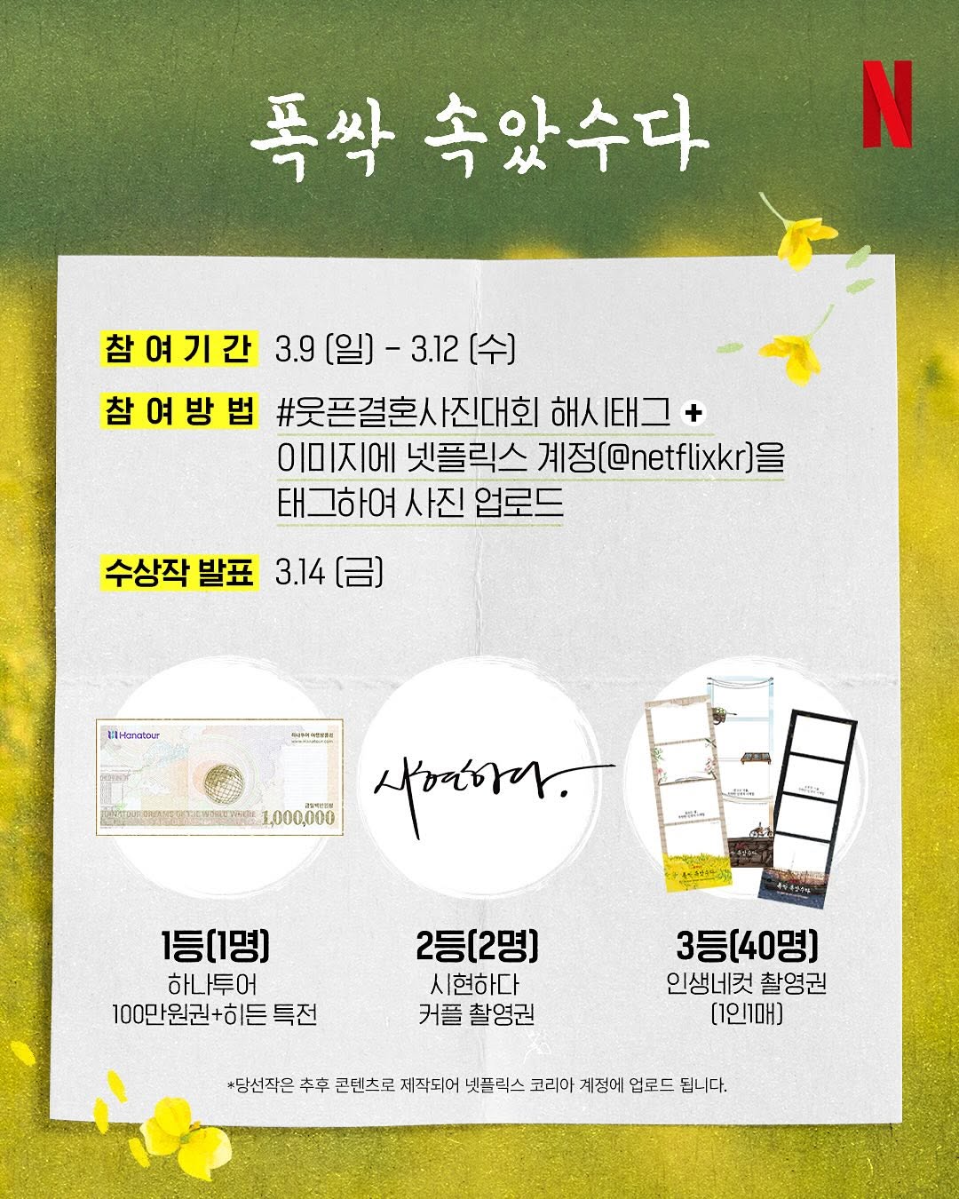 이처럼 이벤트는 단순한 참여를 넘어, 드라마의 메시지를 고객이 경험할 수 있도록 확장시켰습니다. 이를 통해 넷플릭스는 시청자에게 <폭싹 속았수다>다운 경험을 선사한 것이죠.
