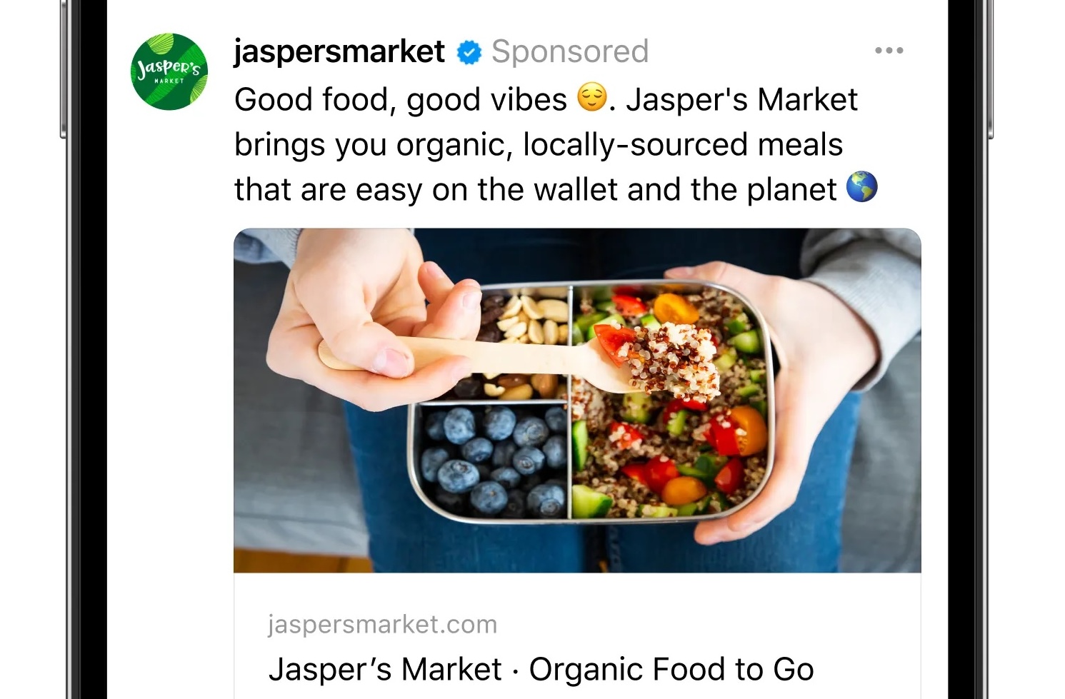 스레드 광고는 인스타그램 광고처럼 피드 중앙에 이미지로 노출됩니다. 메타 관리자 계정에서 설정할 수 있어요. 광고 옆에는 Sponsored 마크가 붙게 됩니다.