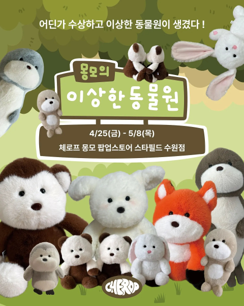 몽모와 친구들이 수상하고(!) 귀여운 동물원으로 수원에 상륙했어요. 스타필드 수원에서 열리는 몽모의 이상한 동물원 팝업스토어에서는 토몽이, 몽숭이 등 몽모 전 라인업을 직접 보고 만지고 입양(!)할 수 있는 절호의 기회랍니다🐰🦊