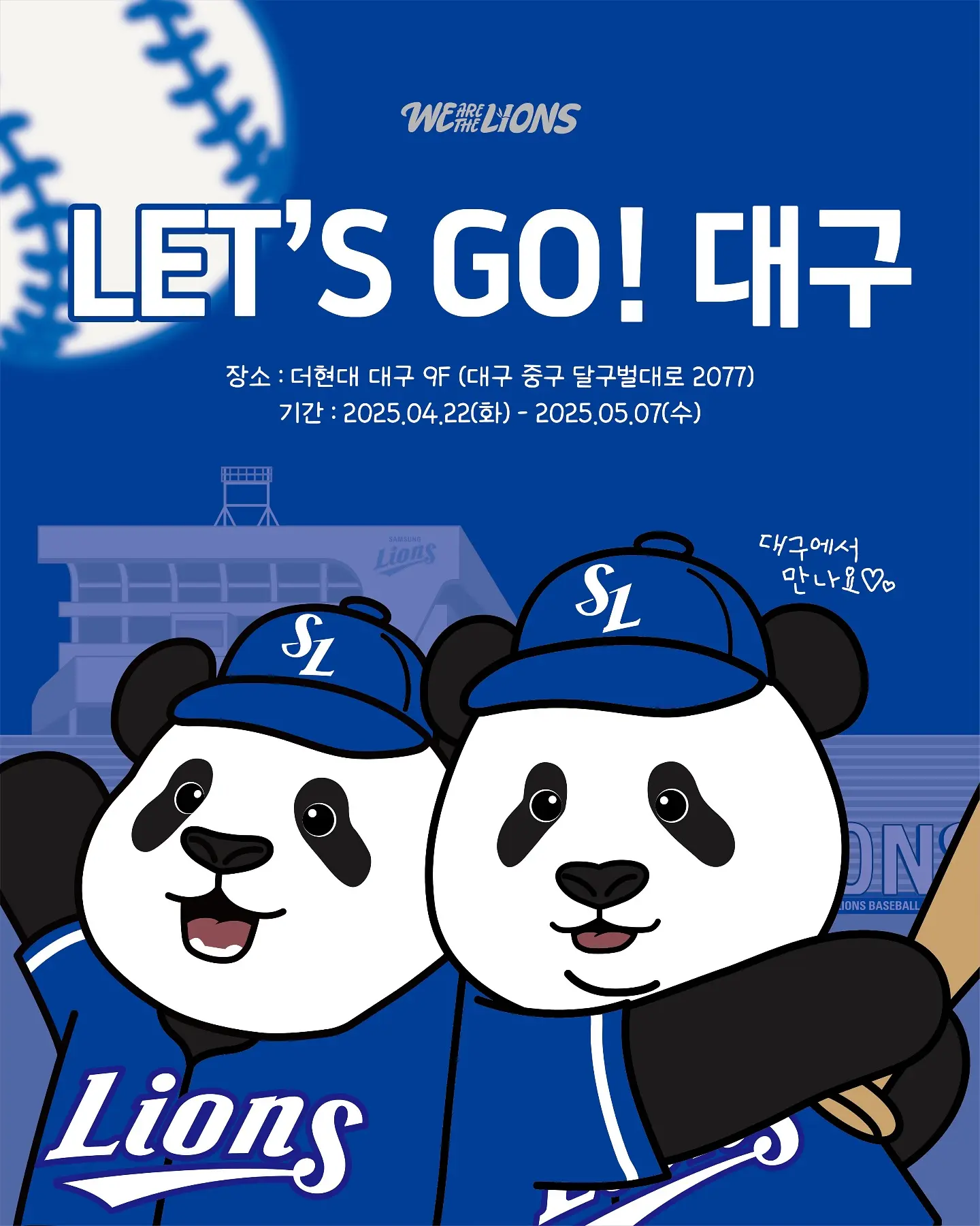 바오패밀리의 뜨거운 야구 사랑을 담은 팝업스토어가 더현대 대구에서 열립니다! 삼성라이온즈 팬이라면 절대 놓칠 수 없는 특별한 콜라보를 만나보세요.