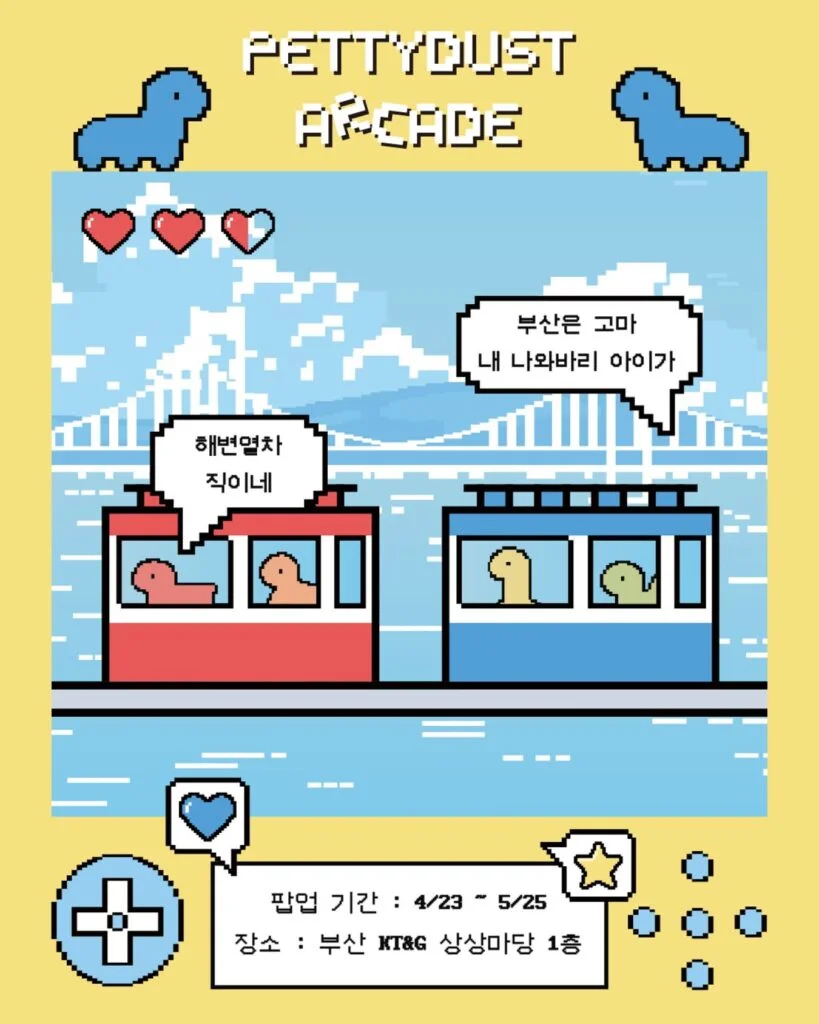 부산에만 등장한 단독 팝업! 우주먼지가 게임 속 세상으로 들어간 특별한 아케이드 팝업스토어가 열렸어요🎮 귀여운 캐릭터 우주먼지와 함께하는 이번 팝업에서는 게임 미션을 수행하고 선물도 받을 수 있습니다.