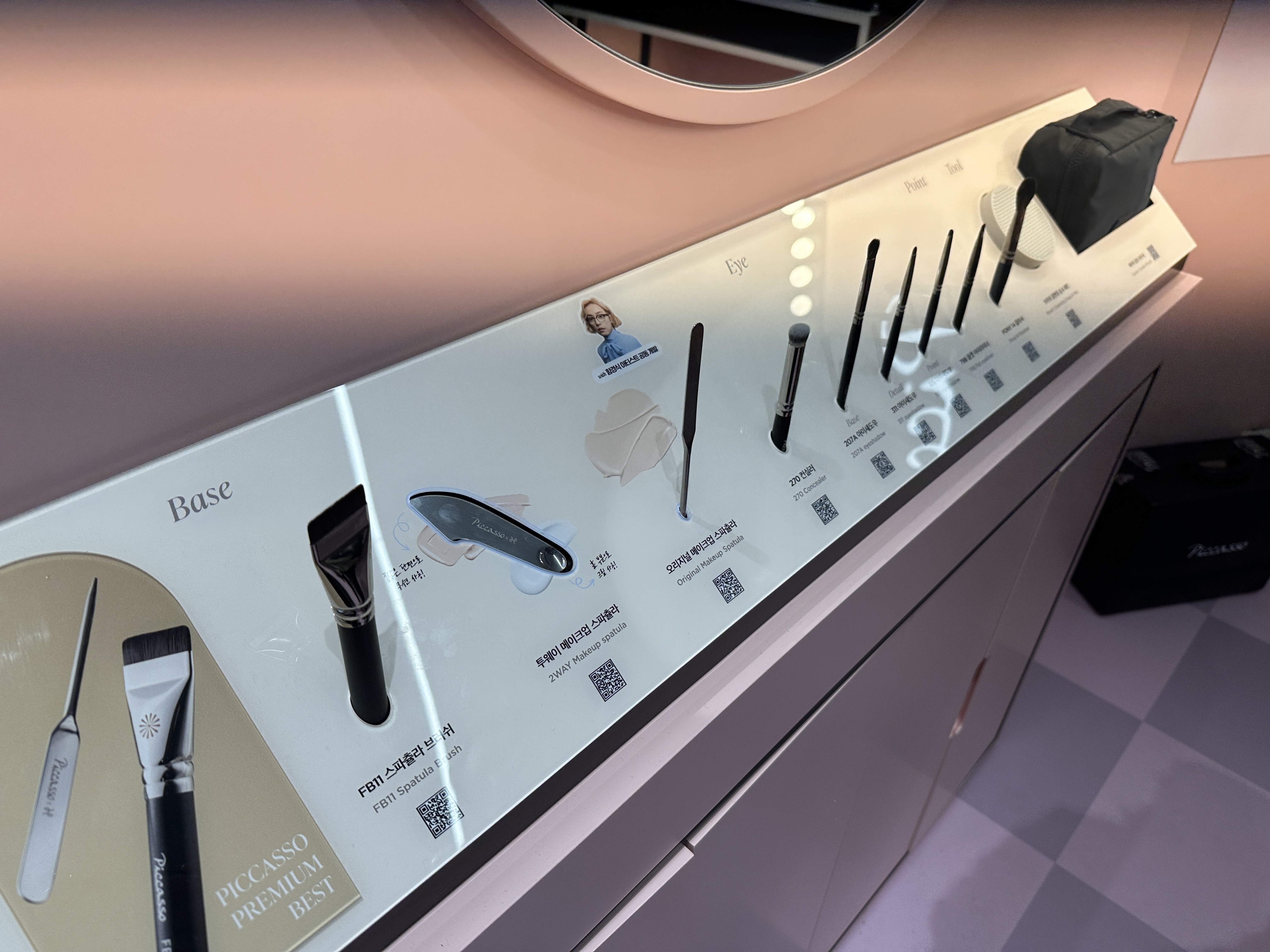 피카소는 사다리 이벤트를 하고 있었는데 에디터는 아쉽게도 5등을 했답니다. 브러시가 좋은 회사인 만큼 다양한 브러시를 전시해 놓았는데요. 스파출라를 구경하다 필요 없는데 살 뻔했답니다.