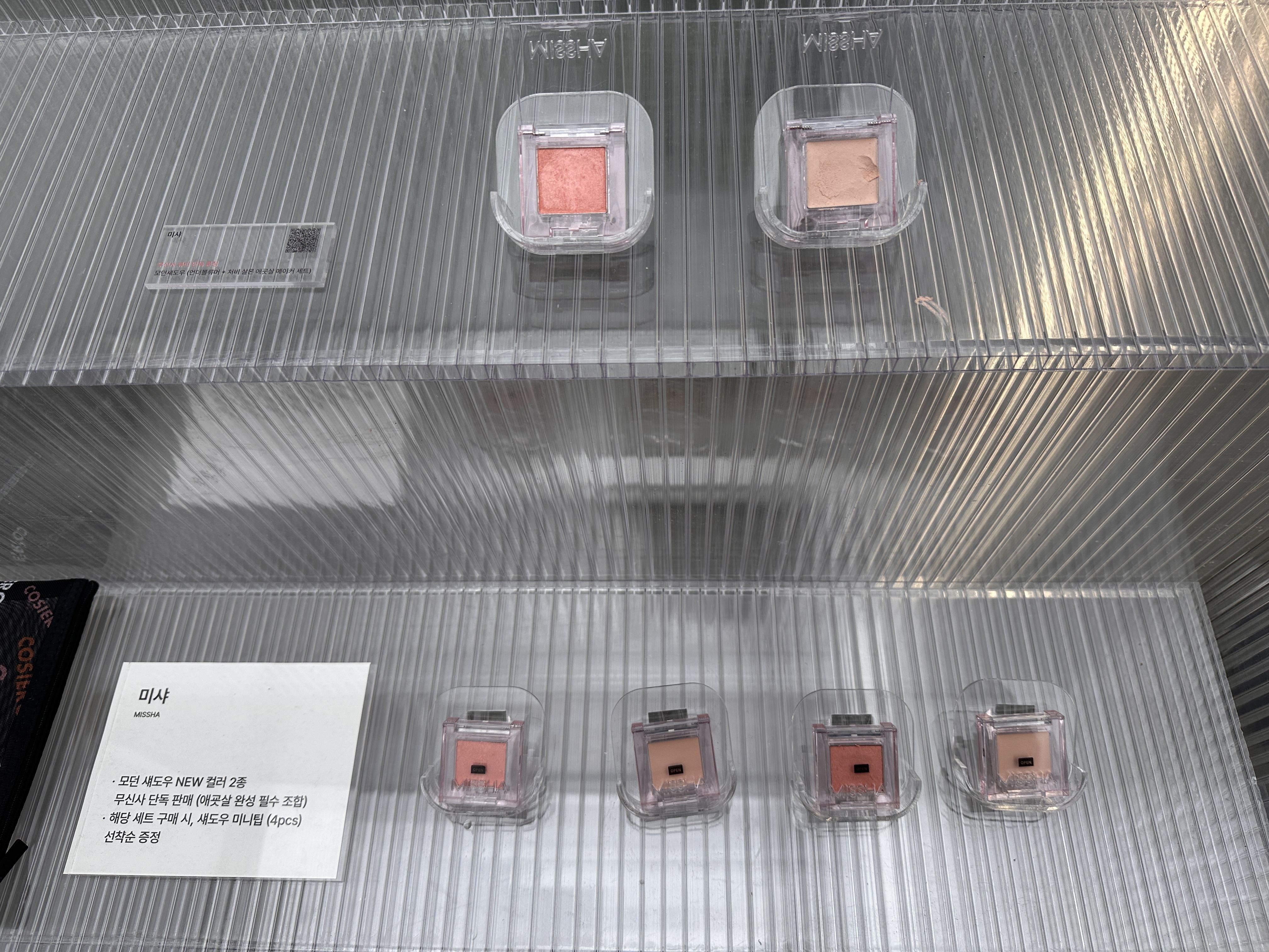 요즘 인기인 피브, 글피오 등의 브랜드가 전시돼 있네요. 저 스틱은 립과 블러셔, 노즈 하이라이트, 쉐이딩까지 가능한 코시에로의 아이코닉 컬러 완드입니다.