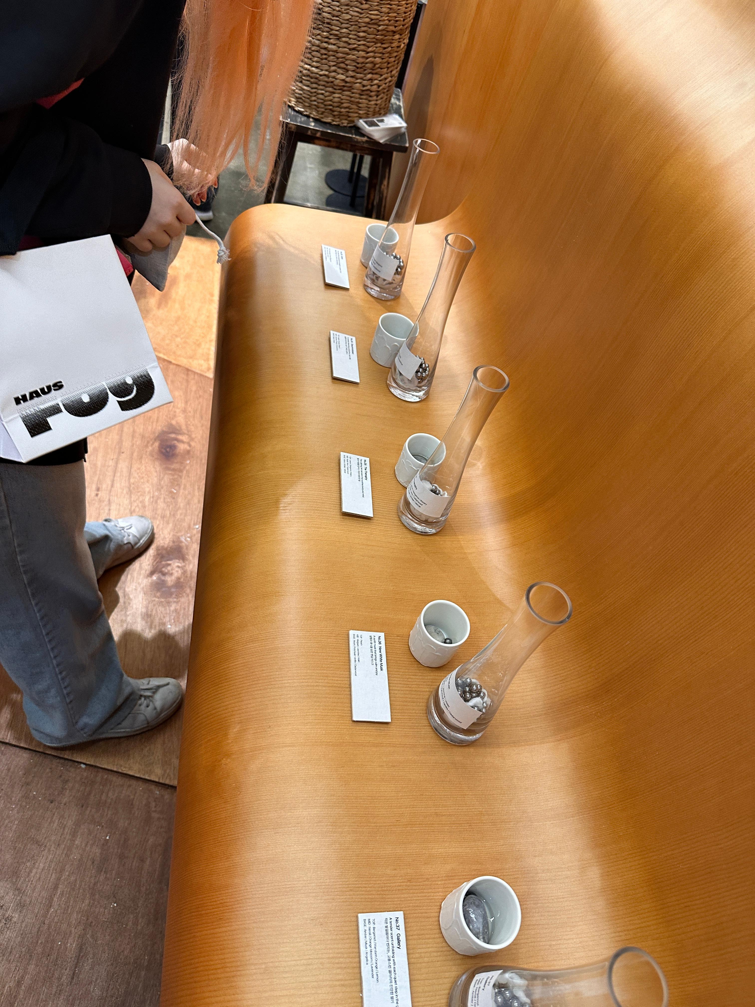무신사 스탠다드 뷰티는 선크림, 기초 제품 등을 판매하지만 현장에서는 향수 제품을 선보였습니다. 스모크 오우드, 애프터 샤워, 모시 헤이즈 등 무신사 4월 월간 프래그런스 랭킹에서 5위 안에 드는 제품인데요. 특히 스모크 오우드 시향이 매우 좋았어요. 그런데, 향수는 사실 많은 사람들이 사면 같은 향이 날까 봐 구매하기는 꺼려졌습니다. 대신 행사에 참여해서 향수 샘플 2종 증정을 받았고요. 그 안에 스모크 오우드도 포함돼 있었답니다.