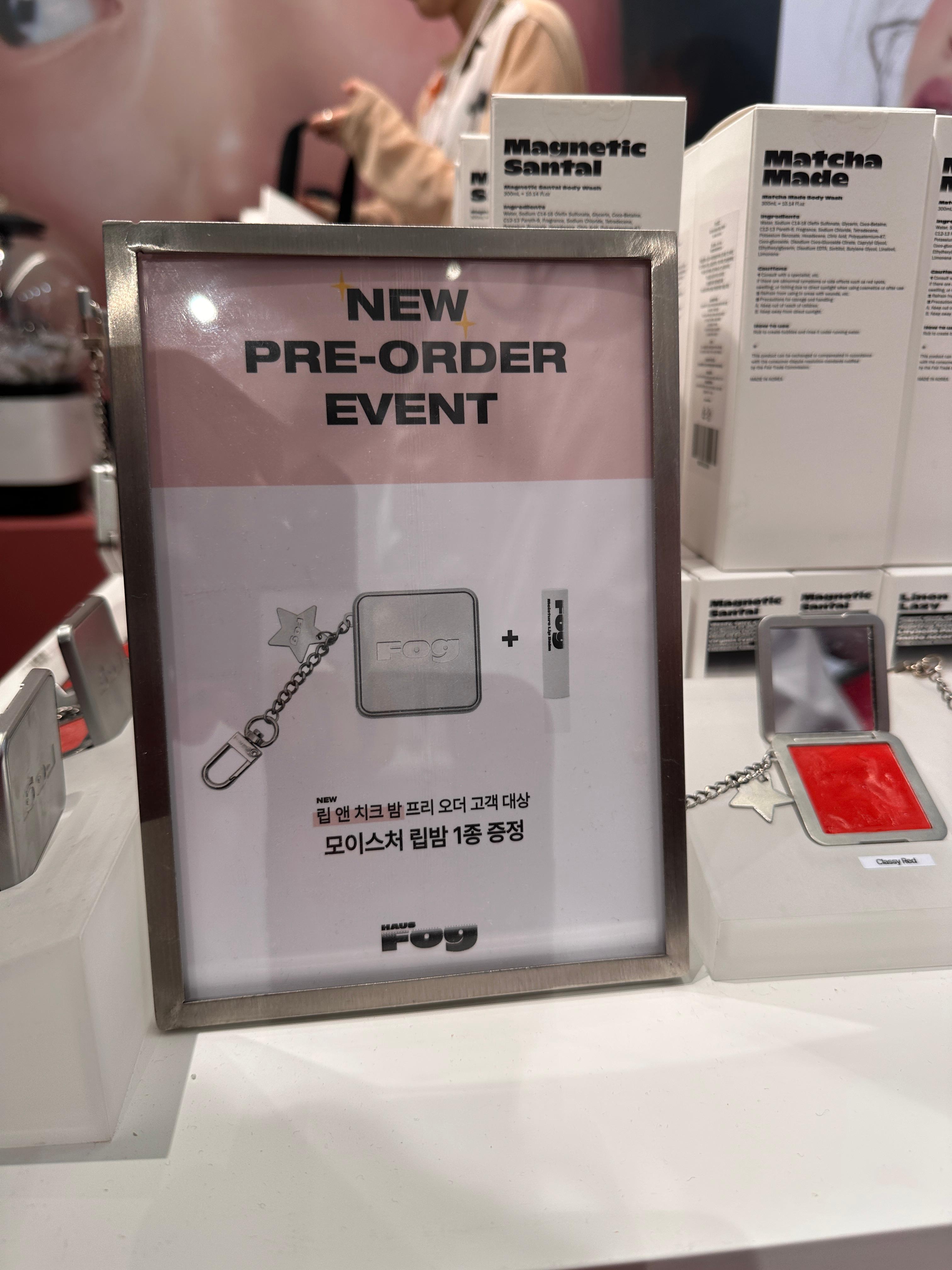 하우스포그는 작은 공간을 십분 활용해 전시와 판매를 모두 하고 있었는데요. 신제품인 립앤치크 밤 케이스가 정말 예뻤답니다. 상품으로도 말차메이드 바디워시를 받을 수 있었어요.