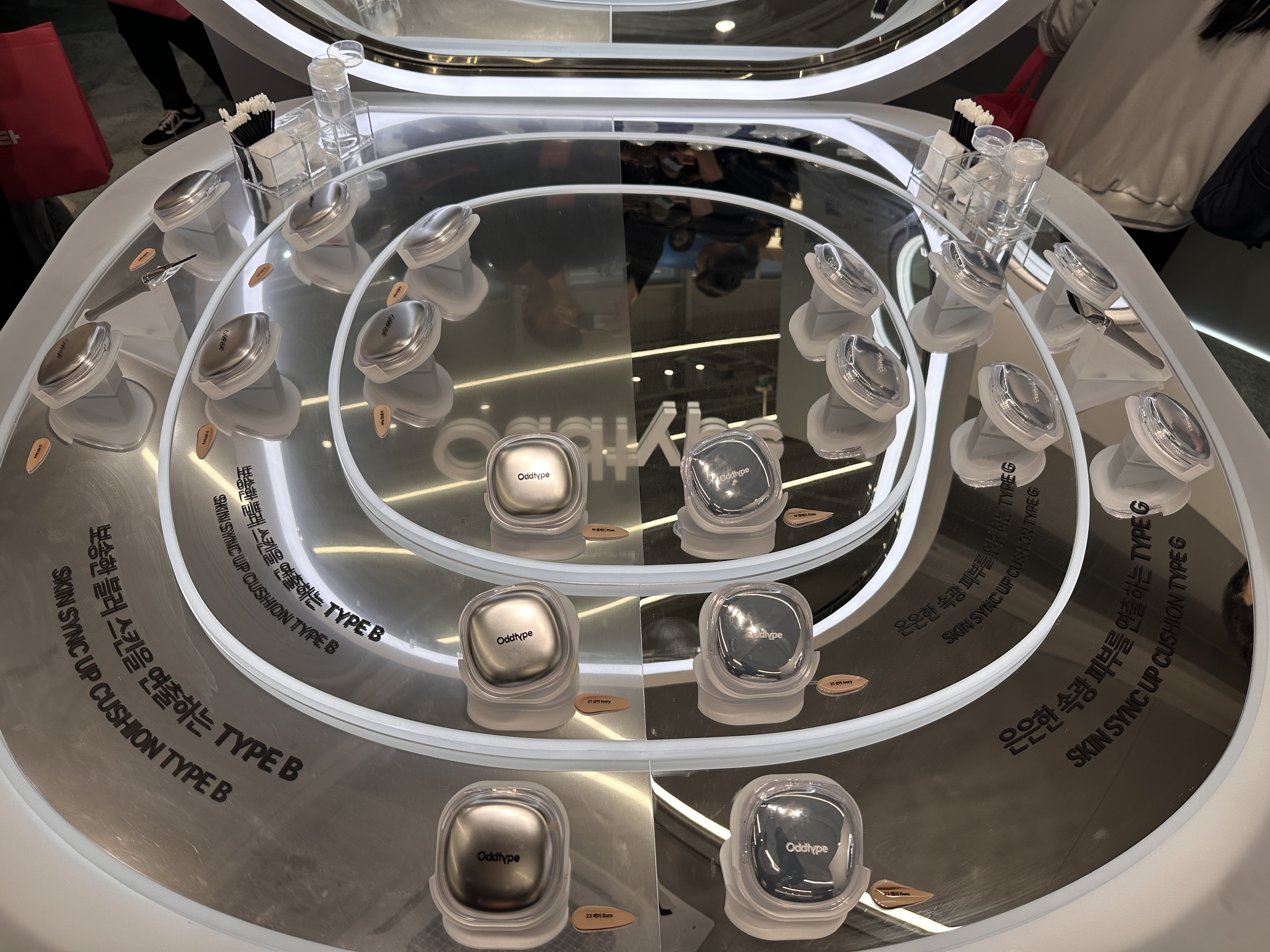 무신사 PB 상품인 오드타입의 부스. 싱크업 쿠션은 매트와 유광 컬러에 맞게 전시되고 잇었고요. 언씬 벌룬 틴트도 체험해 볼 수 있었답니다.