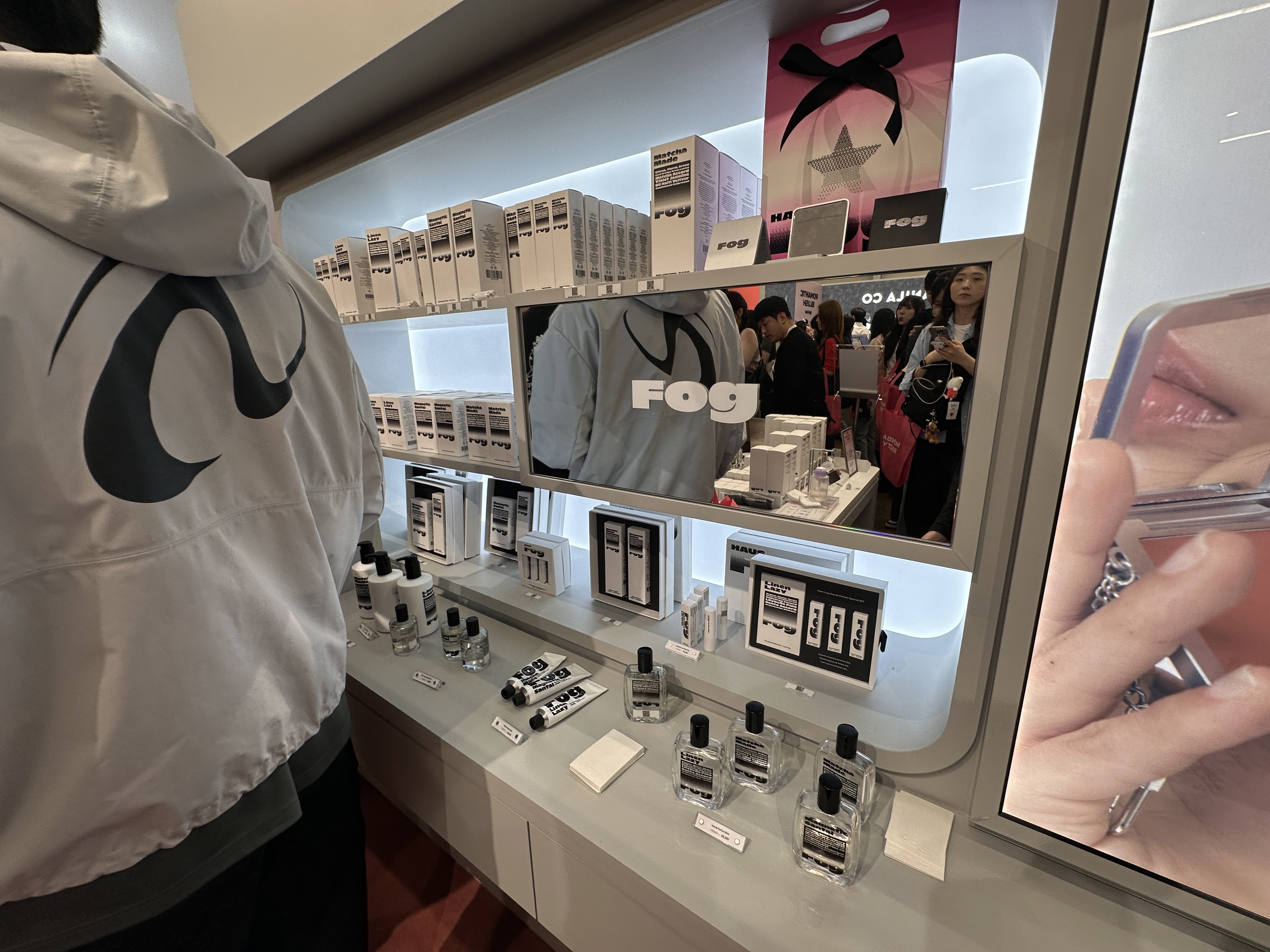 하우스포그는 작은 공간을 십분 활용해 전시와 판매를 모두 하고 있었는데요. 신제품인 립앤치크 밤 케이스가 정말 예뻤답니다. 상품으로도 말차메이드 바디워시를 받을 수 있었어요.