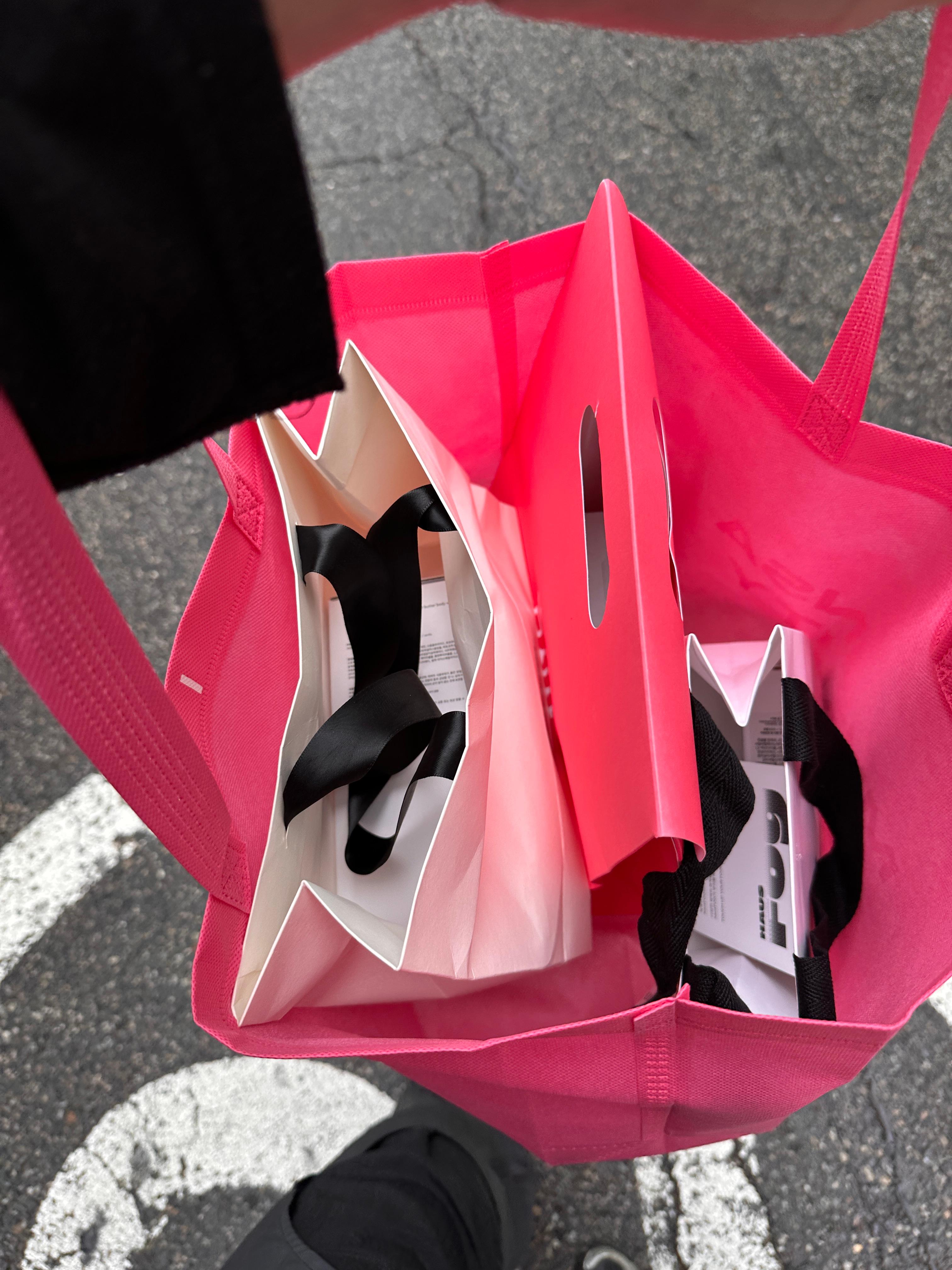 집으로 돌아올 때는 미리 준비한 백팩이 꽉 차고 행사장에서 받은 가방도 꽉 채워 올 수 있었어요. 이날 유독 핑크색 가방을 든 사람들이 성수에 넘쳐났죠.