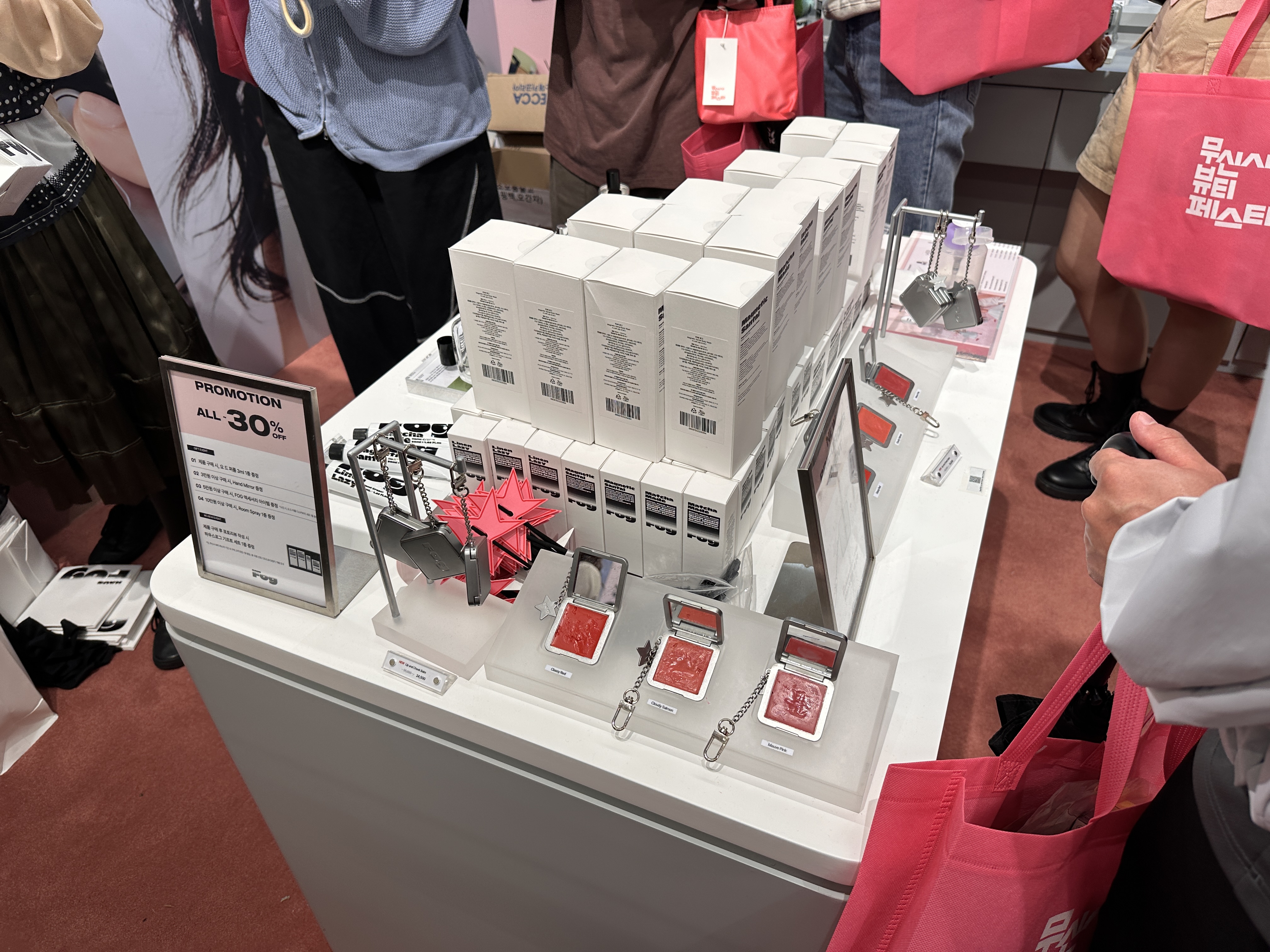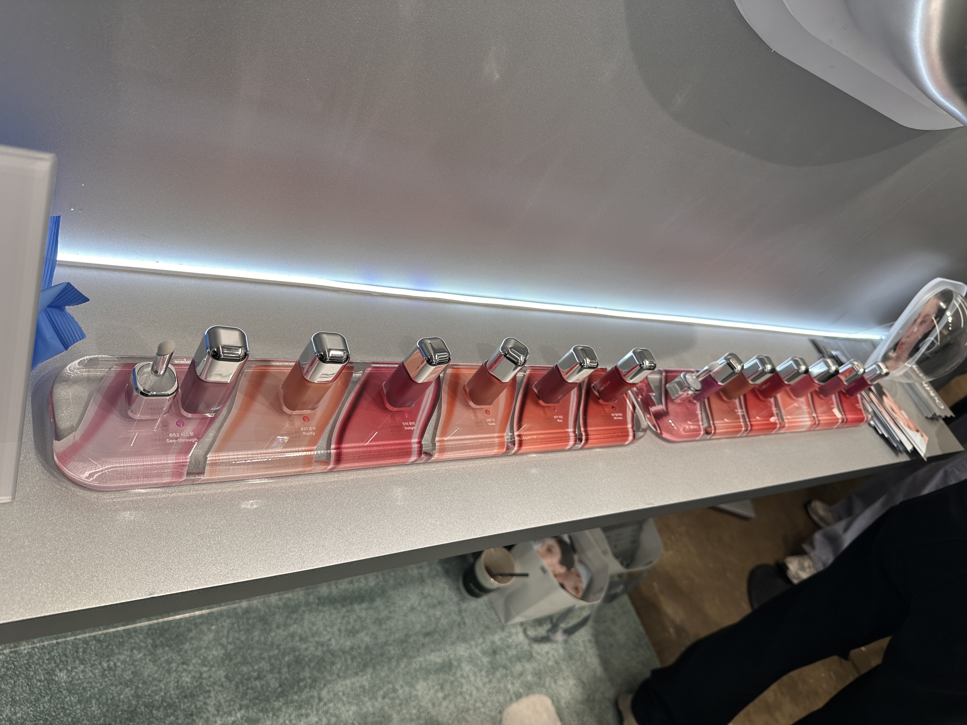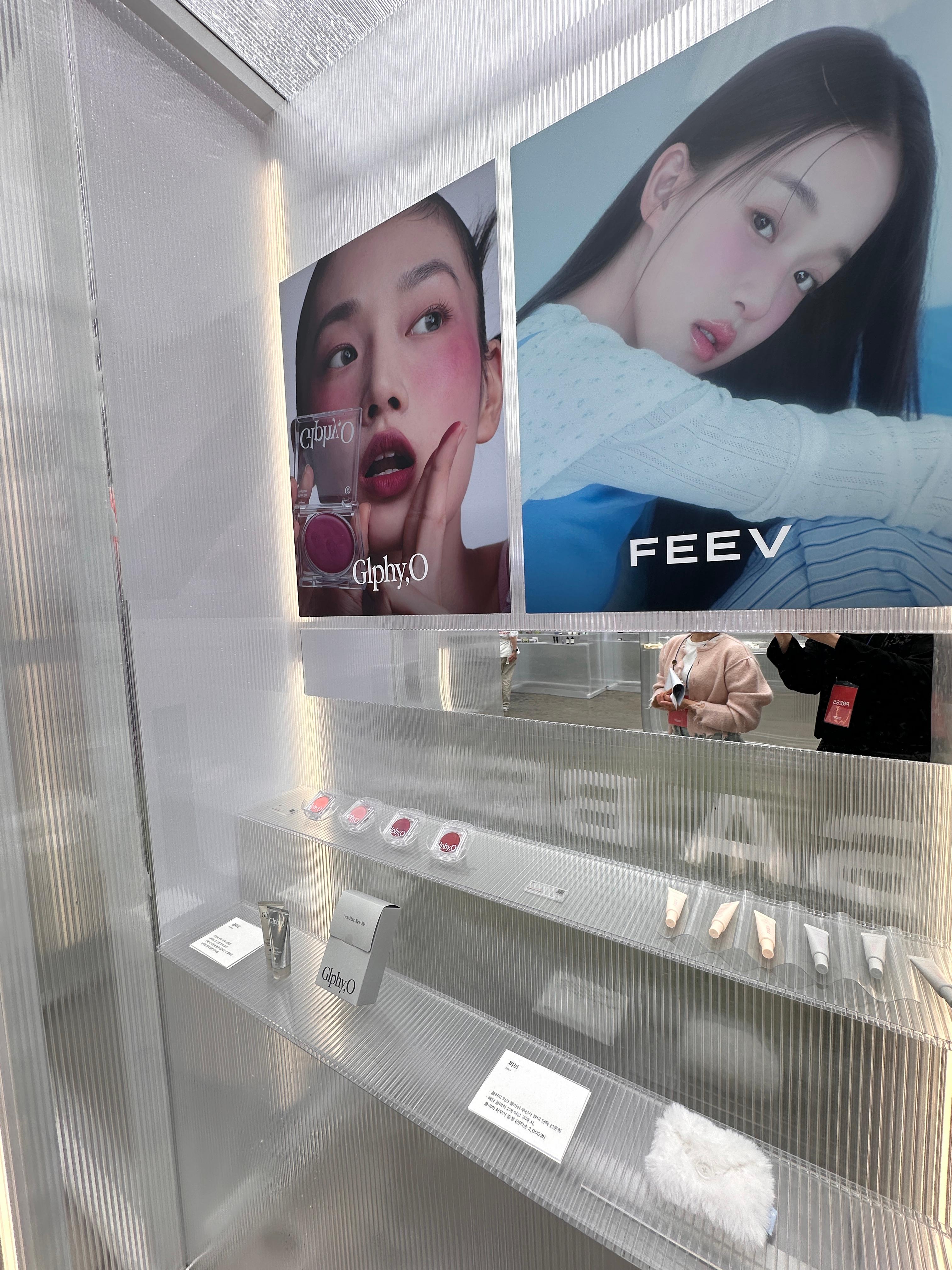 요즘 인기인 피브, 글피오 등의 브랜드가 전시돼 있네요. 저 스틱은 립과 블러셔, 노즈 하이라이트, 쉐이딩까지 가능한 코시에로의 아이코닉 컬러 완드입니다.