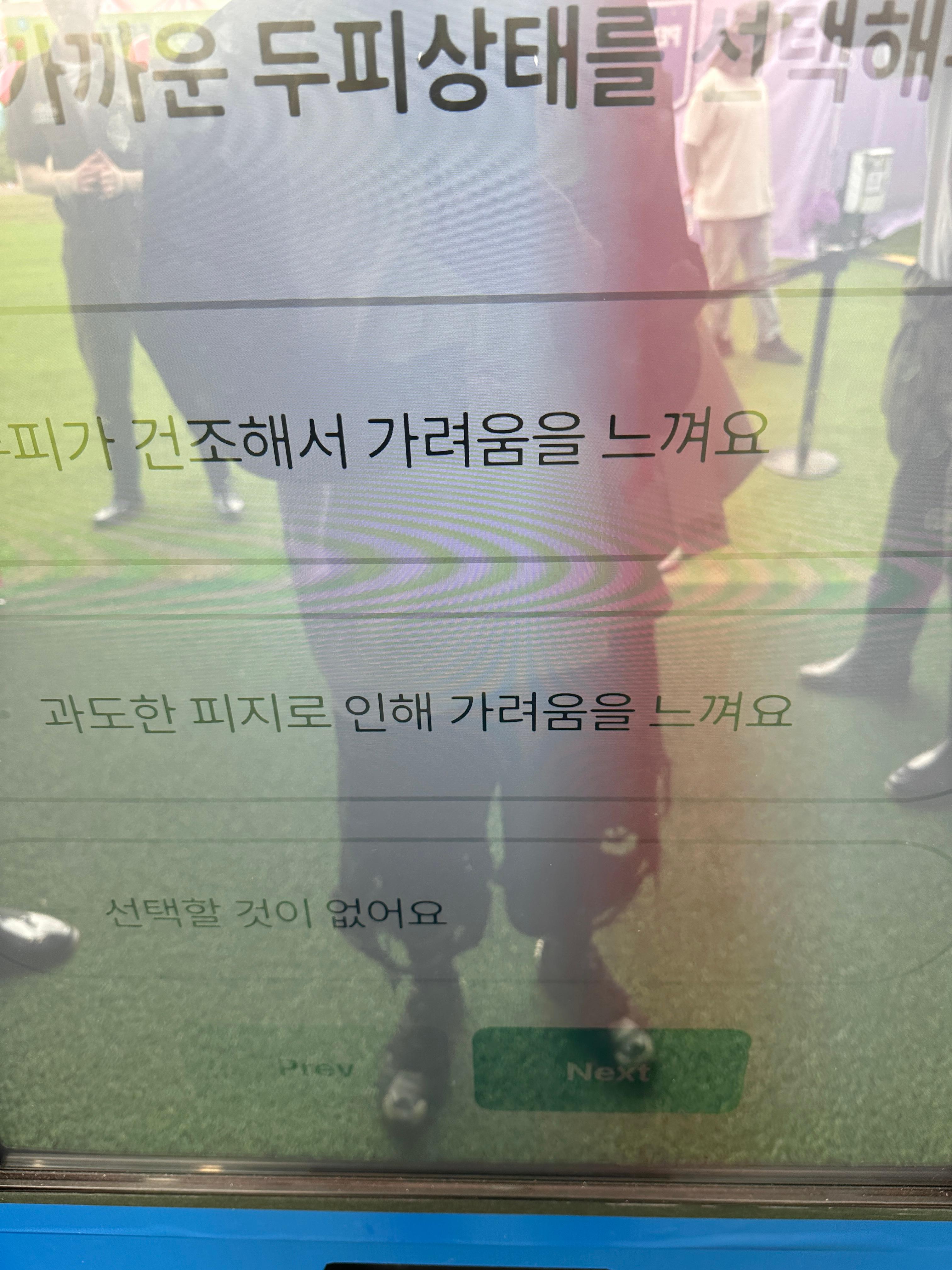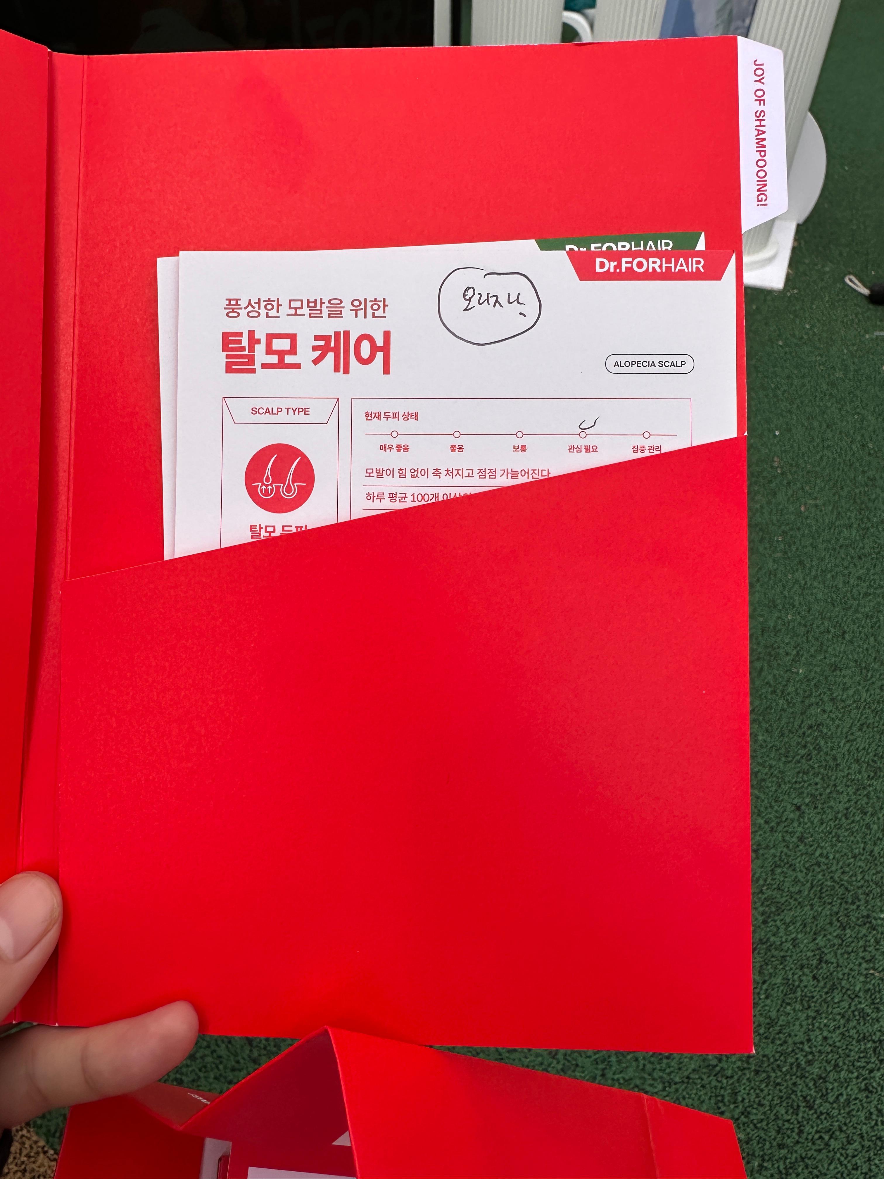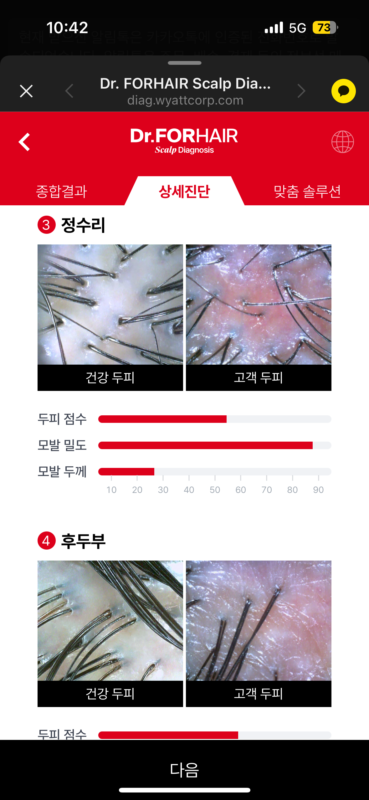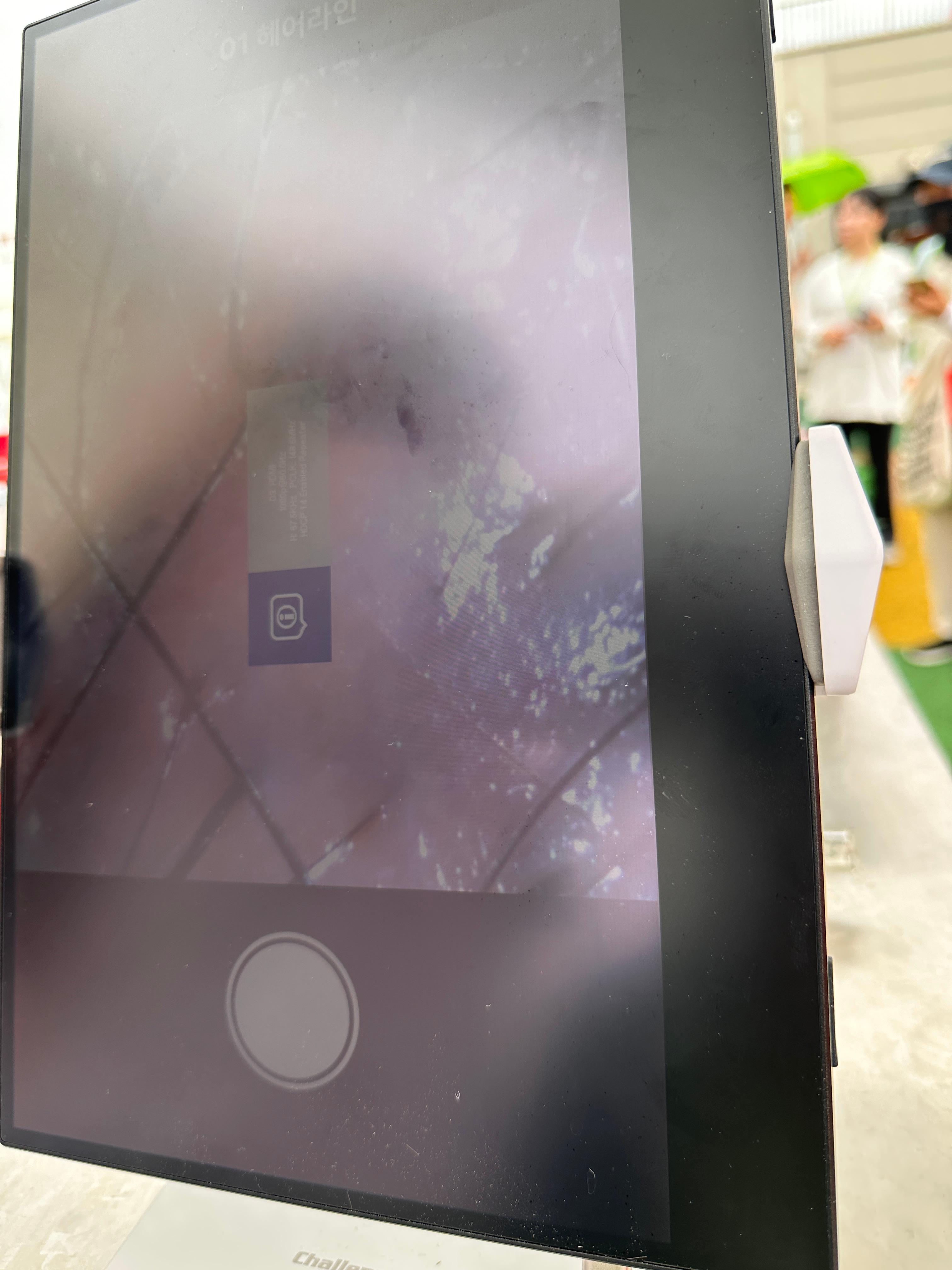 현미경으로 두피를 찍어 정상 두피와 비교해 주는 서비스를 하고 있었어요. 눈에 보이는 영역뿐 아니라 모발 밀도, 두피 컬러, 유분기 등 병원에서 받을 수 있는 서비스를 현장에서 받을 수 있었고요. 이 내용은 카카오톡으로 받을 수도 있었답니다.