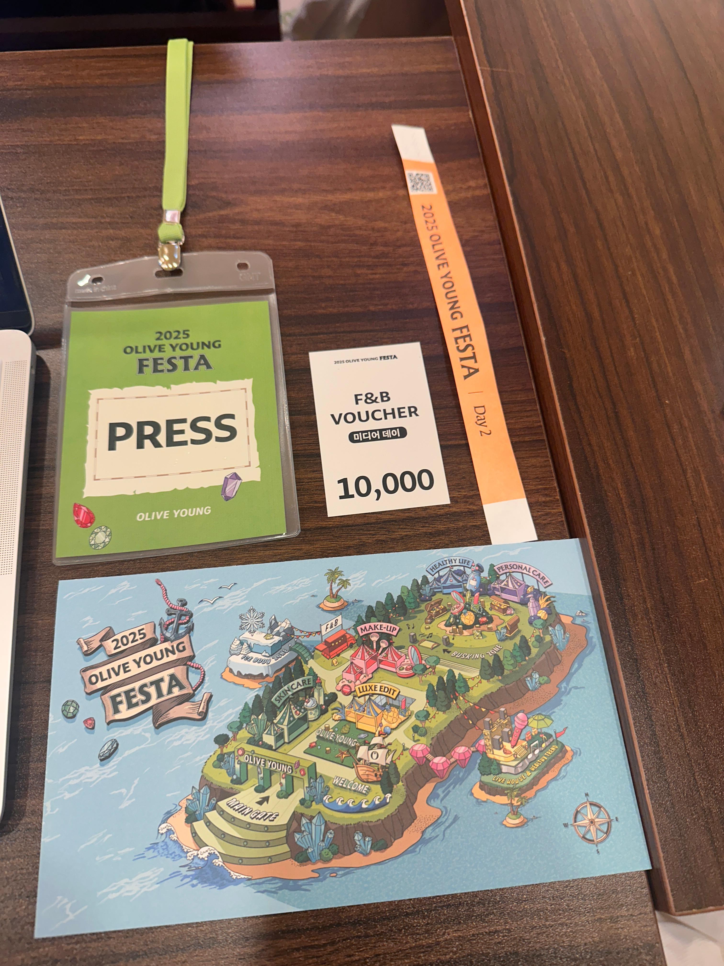 올영 페스타 입장 직전 받은 비표에는 지도, 바우처, 손목 끈 등이 포함돼 있었는데요. 정말 페스티벌다운 모습이죠?
