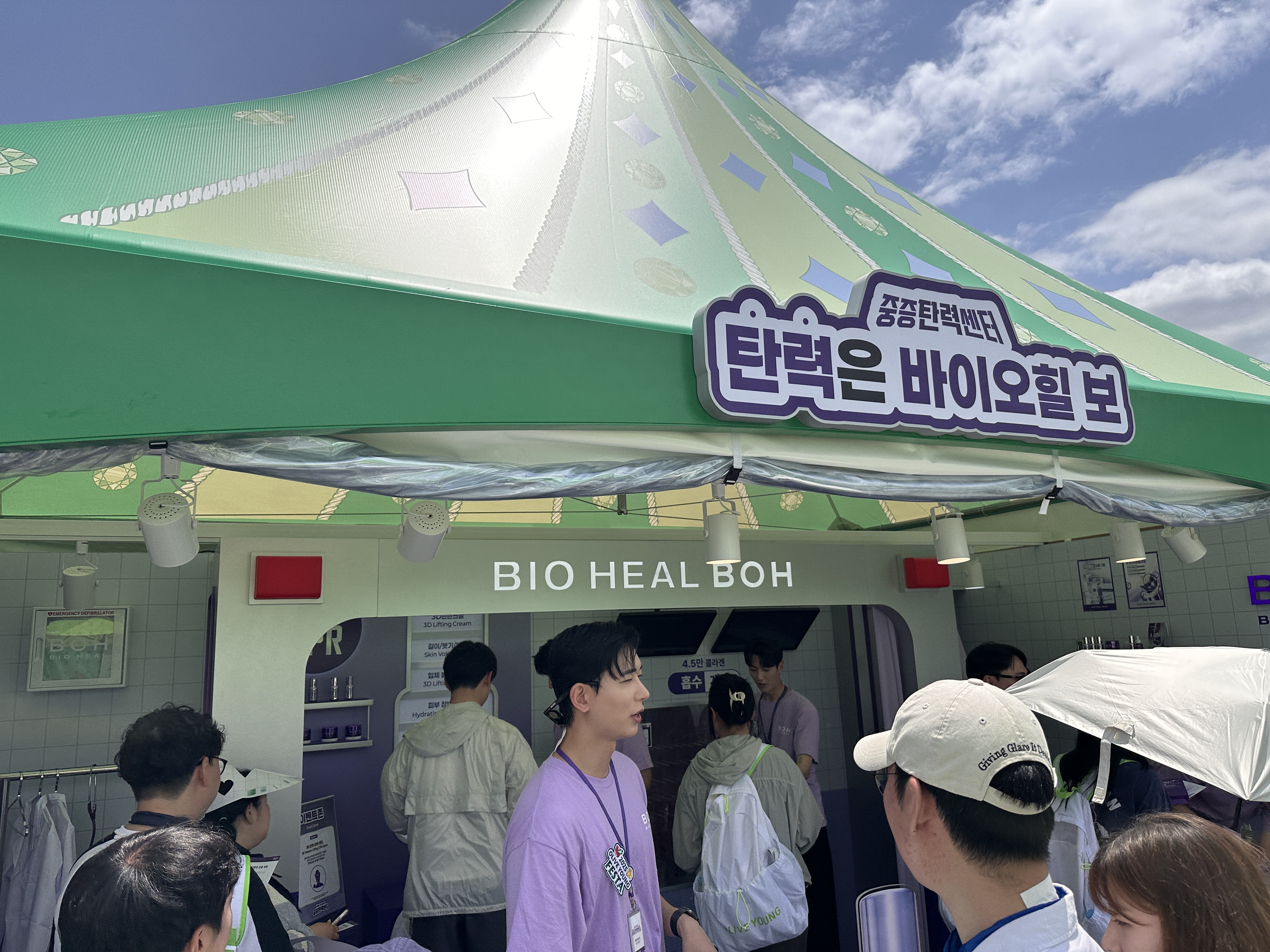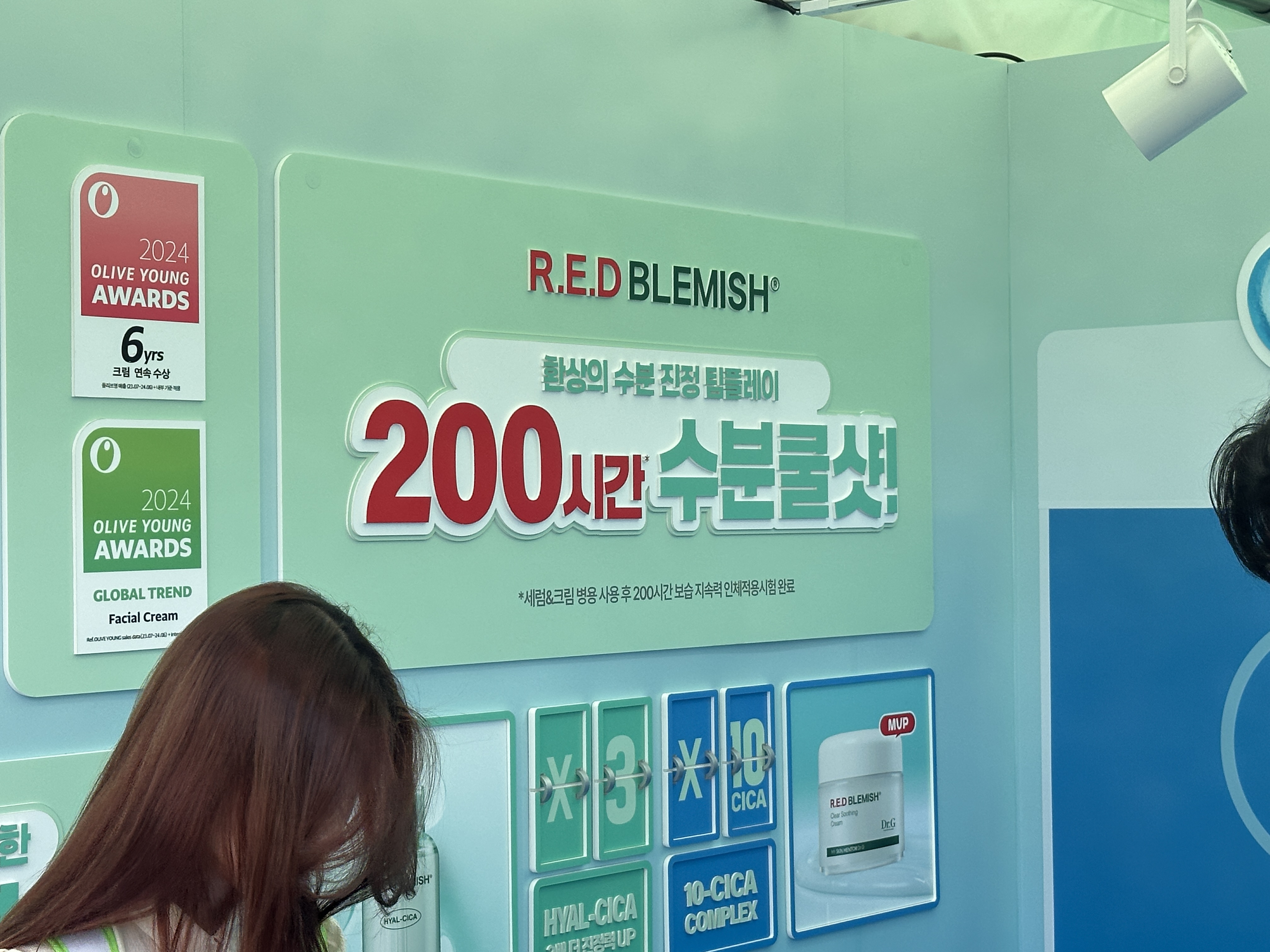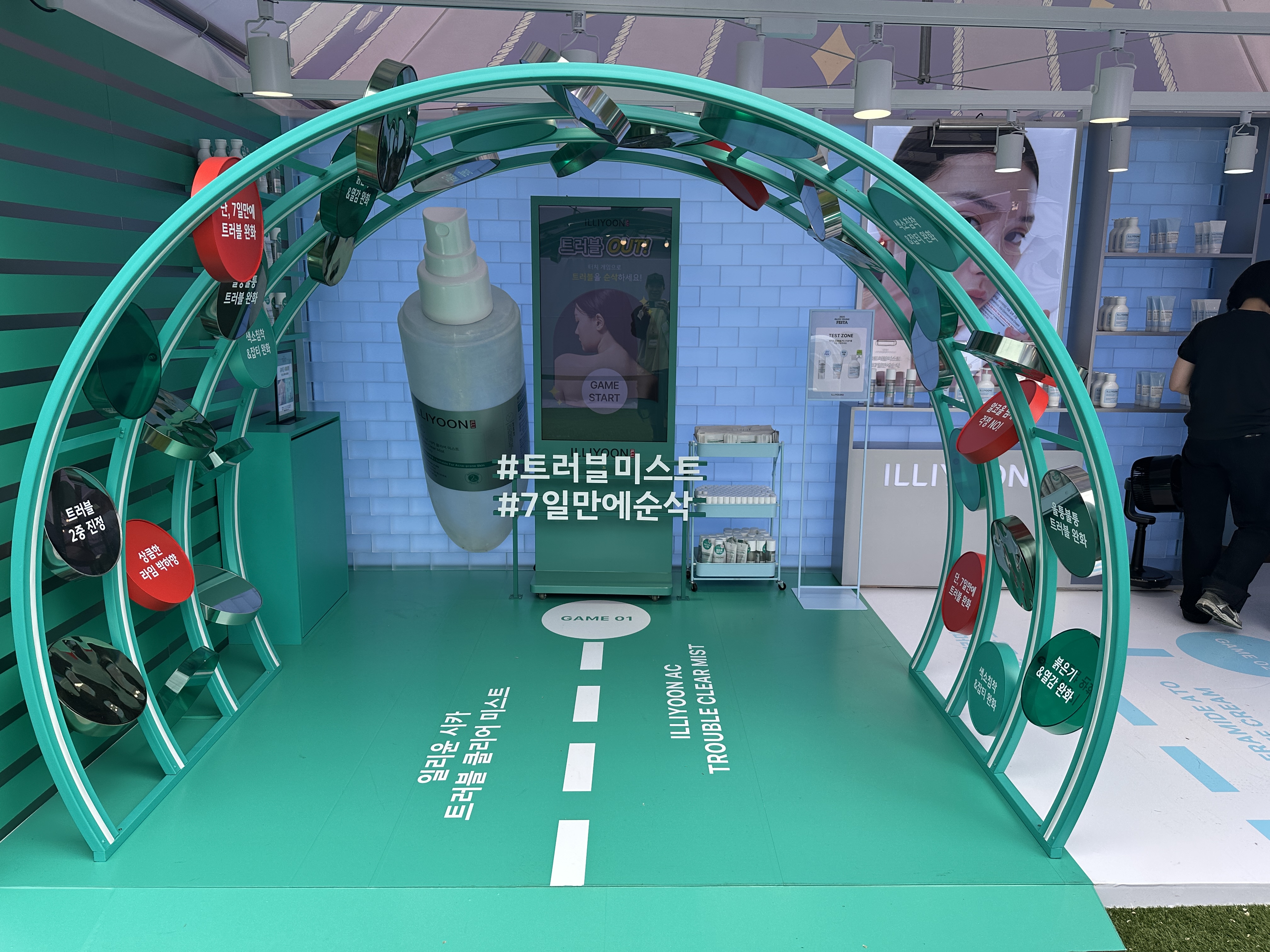 처음 찾은 부스는 일리윤 부스였습니다. 5월 올영픽인 시카 트러블 미스트 제품이 주력이었는데요. 구경만 하려고 했는데 직원분에게 파리가 앉았어요. 그랬더니 직원분이