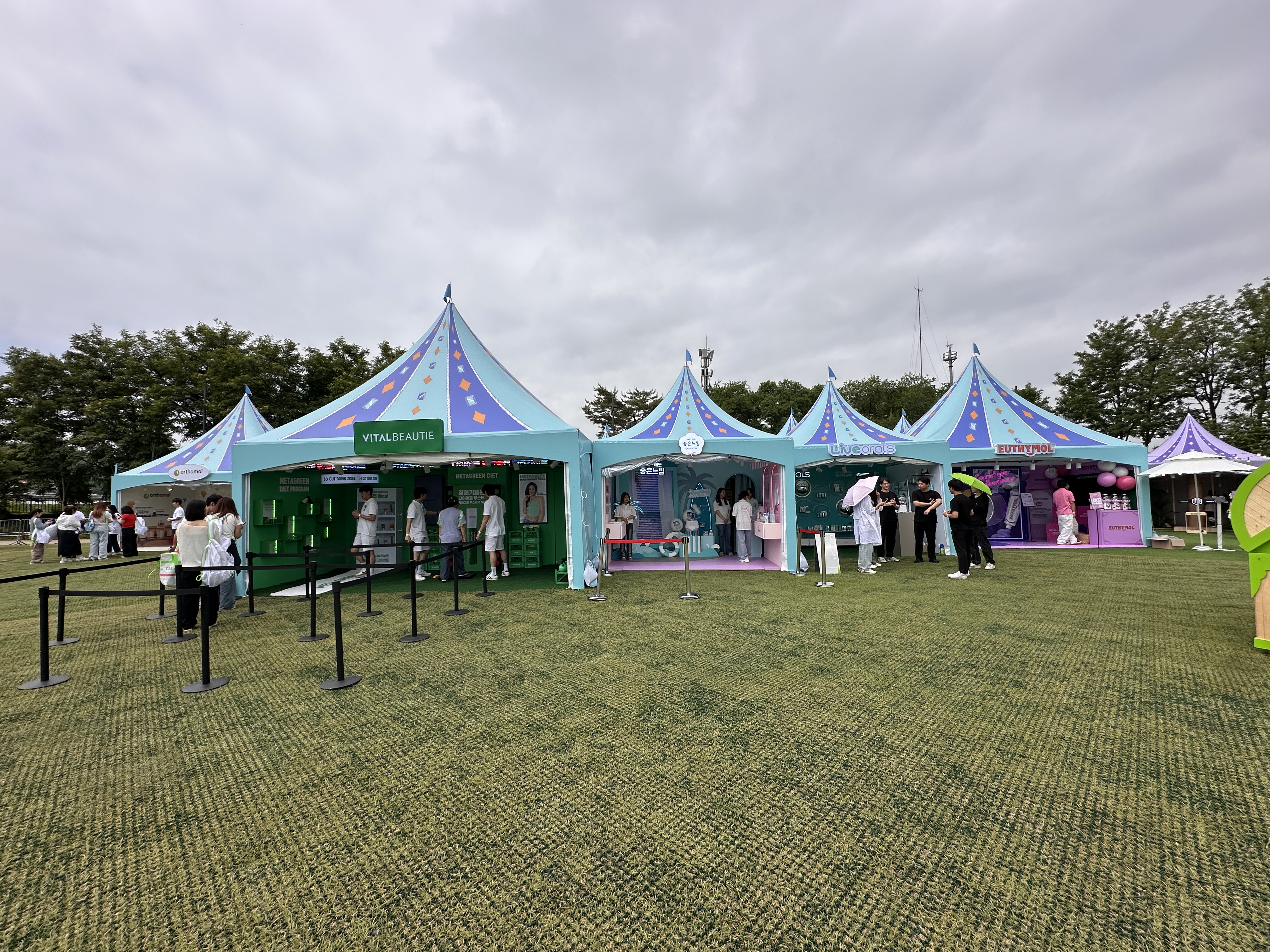 메인스테이지로 보이는 곳에 도착했습니다. 1층 잔디마당은 헬시라이프∙퍼스널케어 존으로 운영되고 있었는데요. 주로 이너뷰티, 건강 기능 식품, 두피 관련 제품들이 있었어요. 두피 고민이 심한 에디터는 1층부터 둘러 보았답니다. 결과적으로 이 선택은 잘못된 것이었어요. 이유는 나중에.