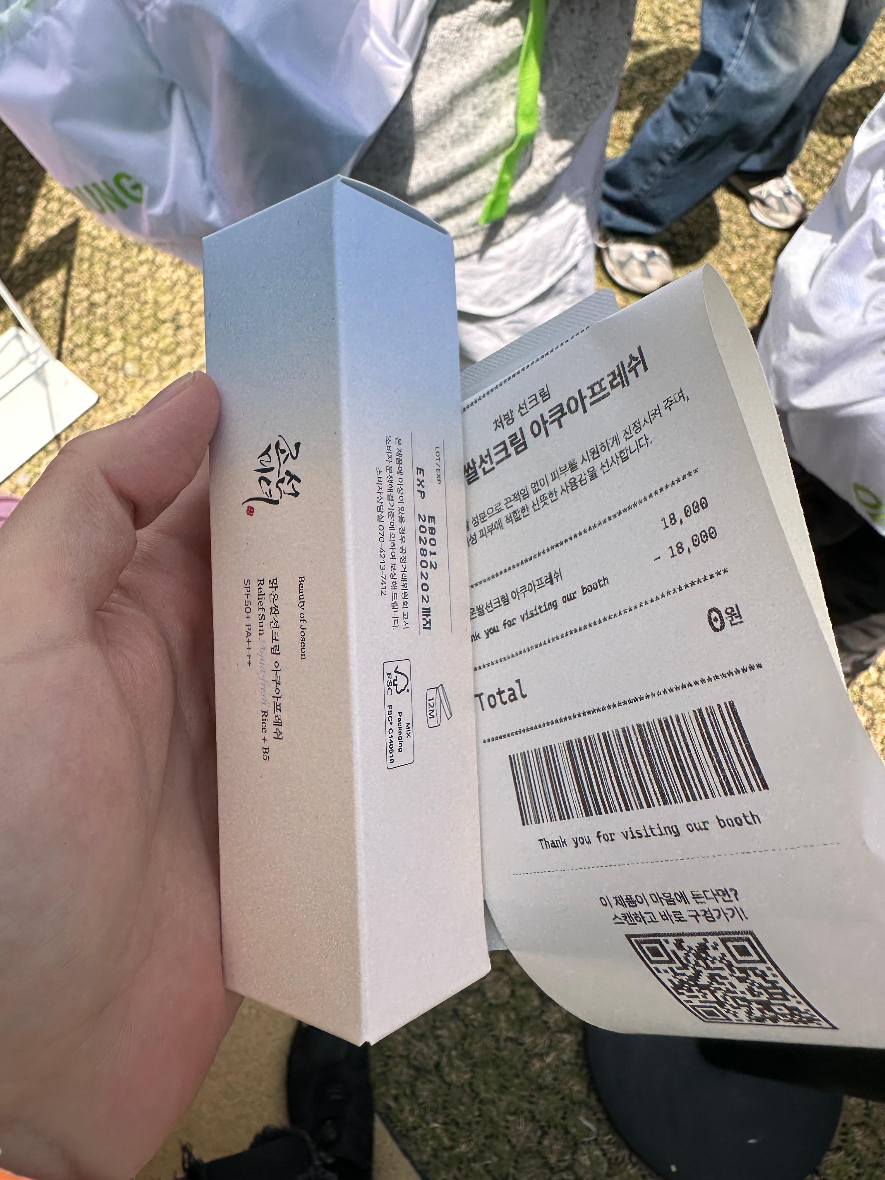 그러던 와중 조선미녀에서 선크림 본품을 증정한다는 첩보를 받고! 바로 출동해서 상품을 받아왔답니다. 이때가 12시쯤 돼서 선크림이 꼭 필요했어요.