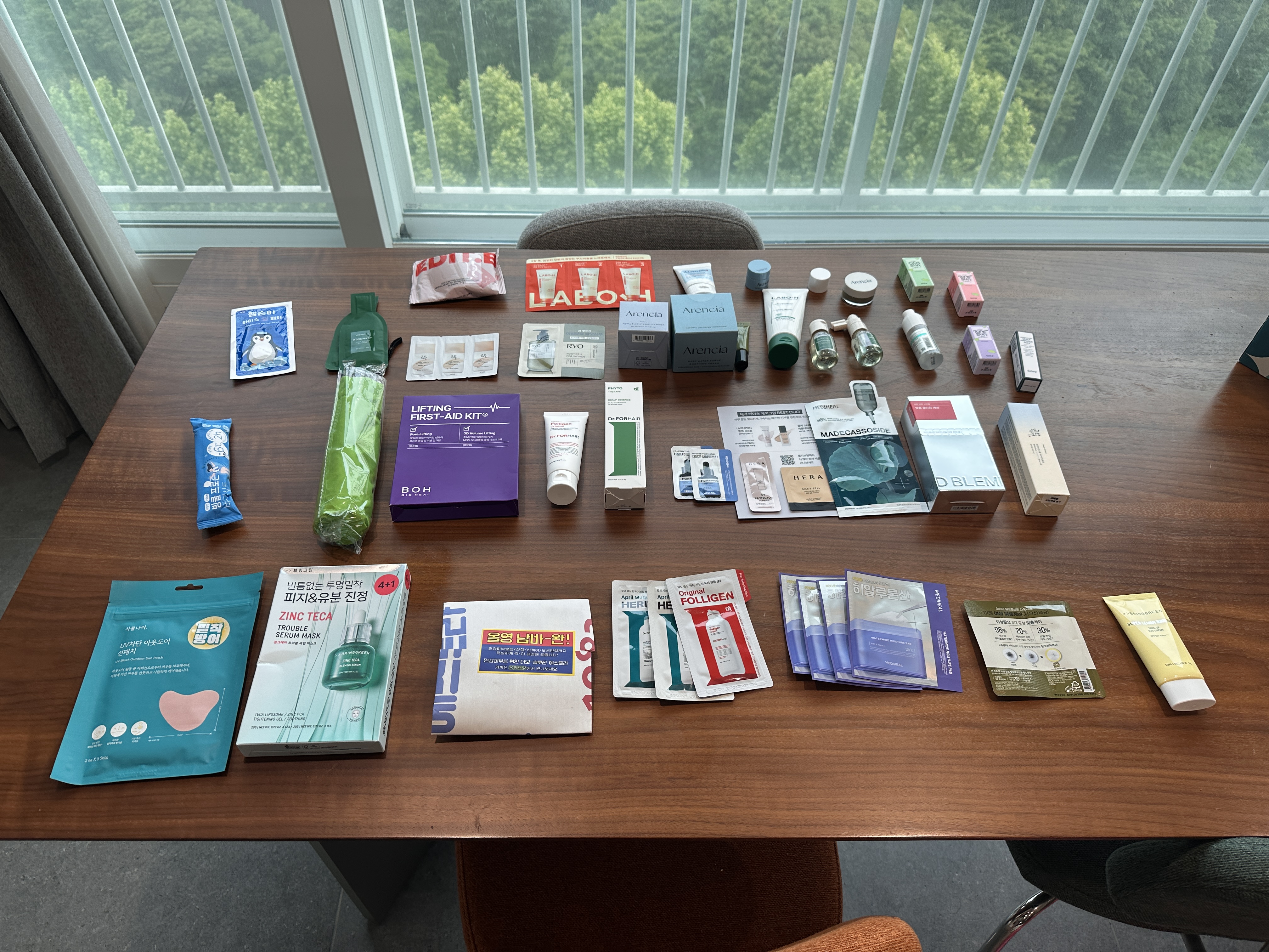 이로써 약 네 시간의 체험을 마칠 수 있었고요. 에디터가 네시오래간만에 받아온 화장품은 샘플과 본품 포함