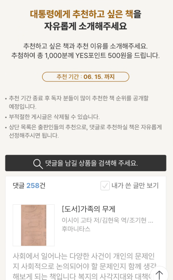 🗳️ 예스24 <21대 대통령에게 추천하는 책> 이벤트