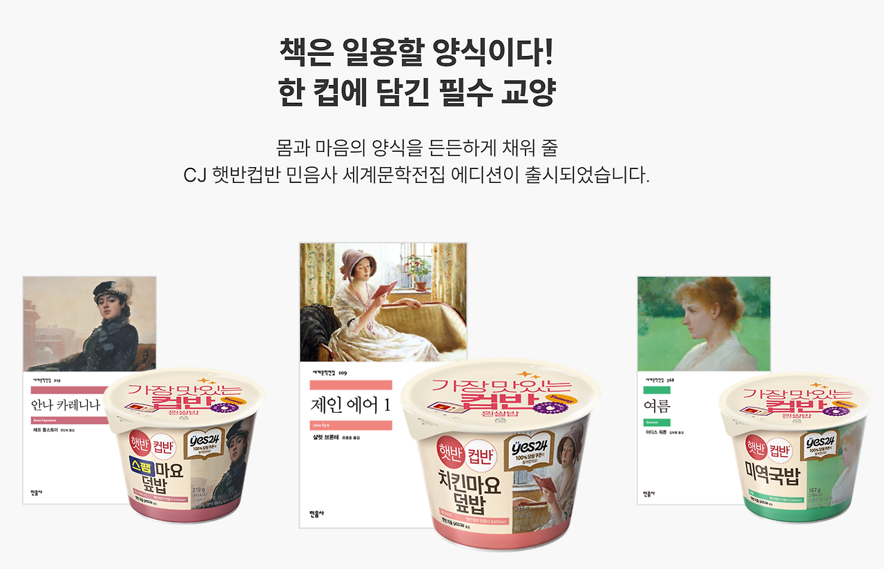 그 외에도 YES24·이마트24와의 협업으로 진행한 ‘세계문학 가정식’ 캠페인도 주목할 만합니다. ‘몸과 마음의 양식’이라는 콘셉트로 책을 식사처럼 즐기는 경험으로 재해석하며, 브랜드 경험을 일상 속으로 확장시켰어요. 이처럼 책을 일상 속에서 경험하는 방식까지 기획하는 점이 민음사의 차별화된 포인트입니다.