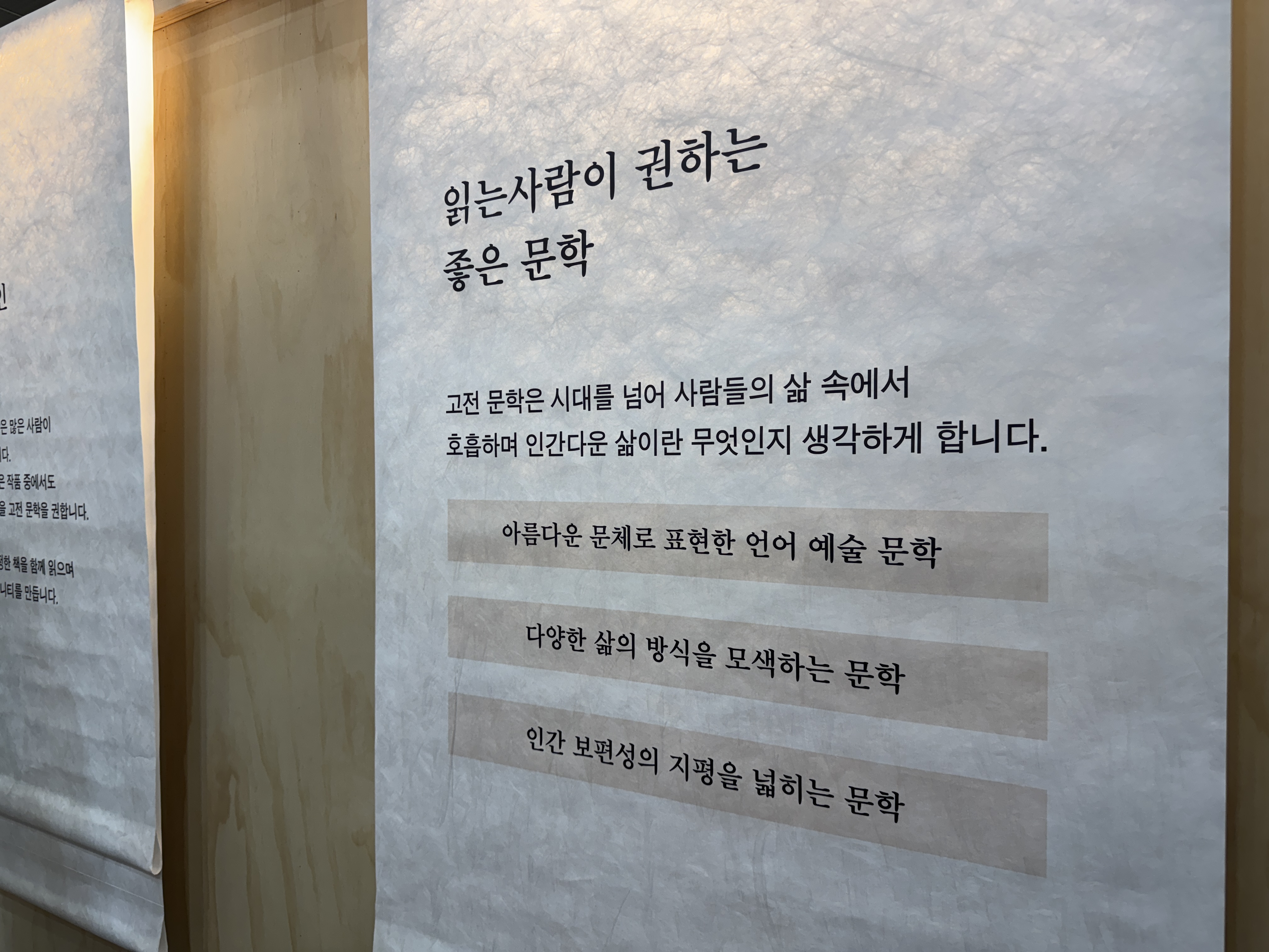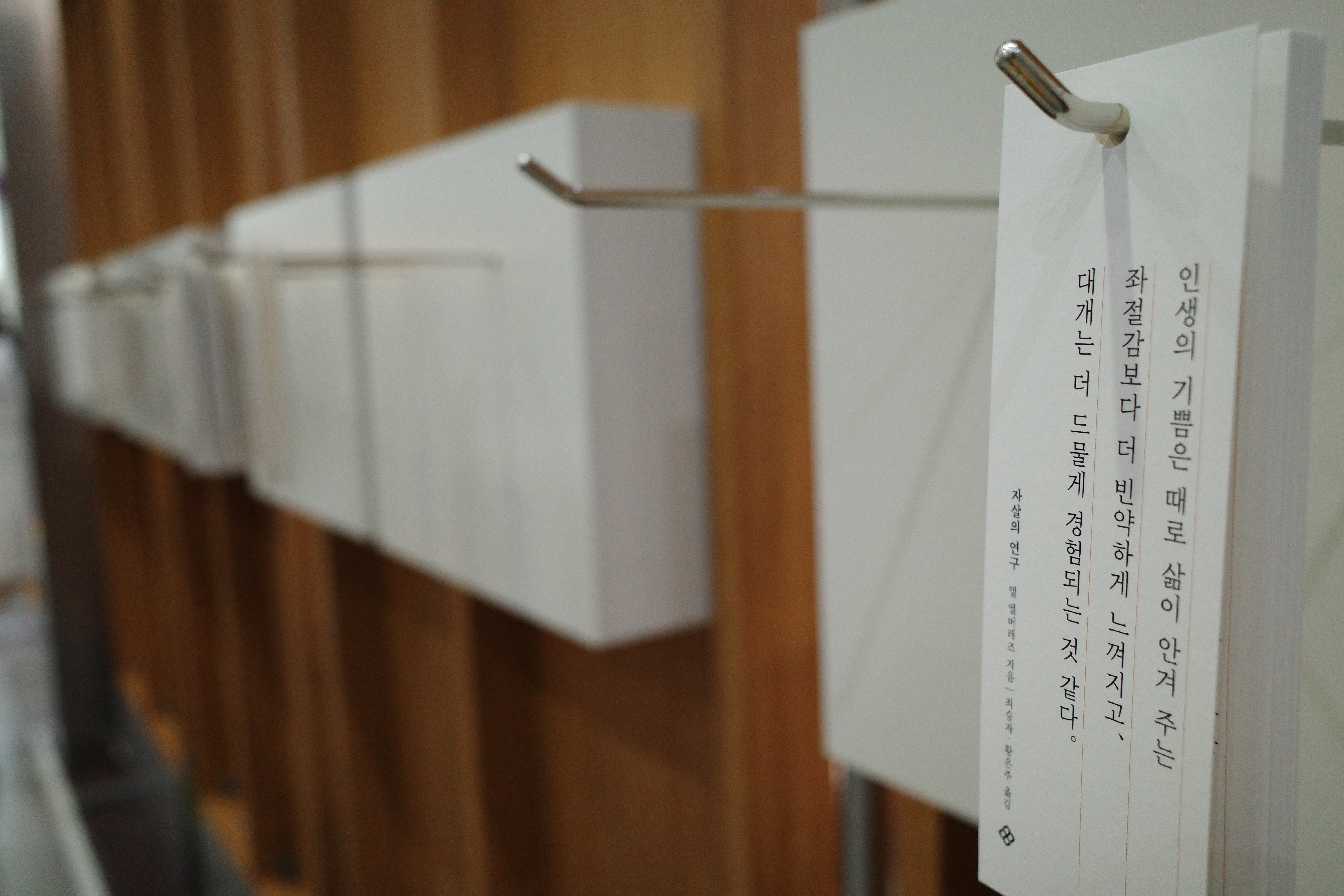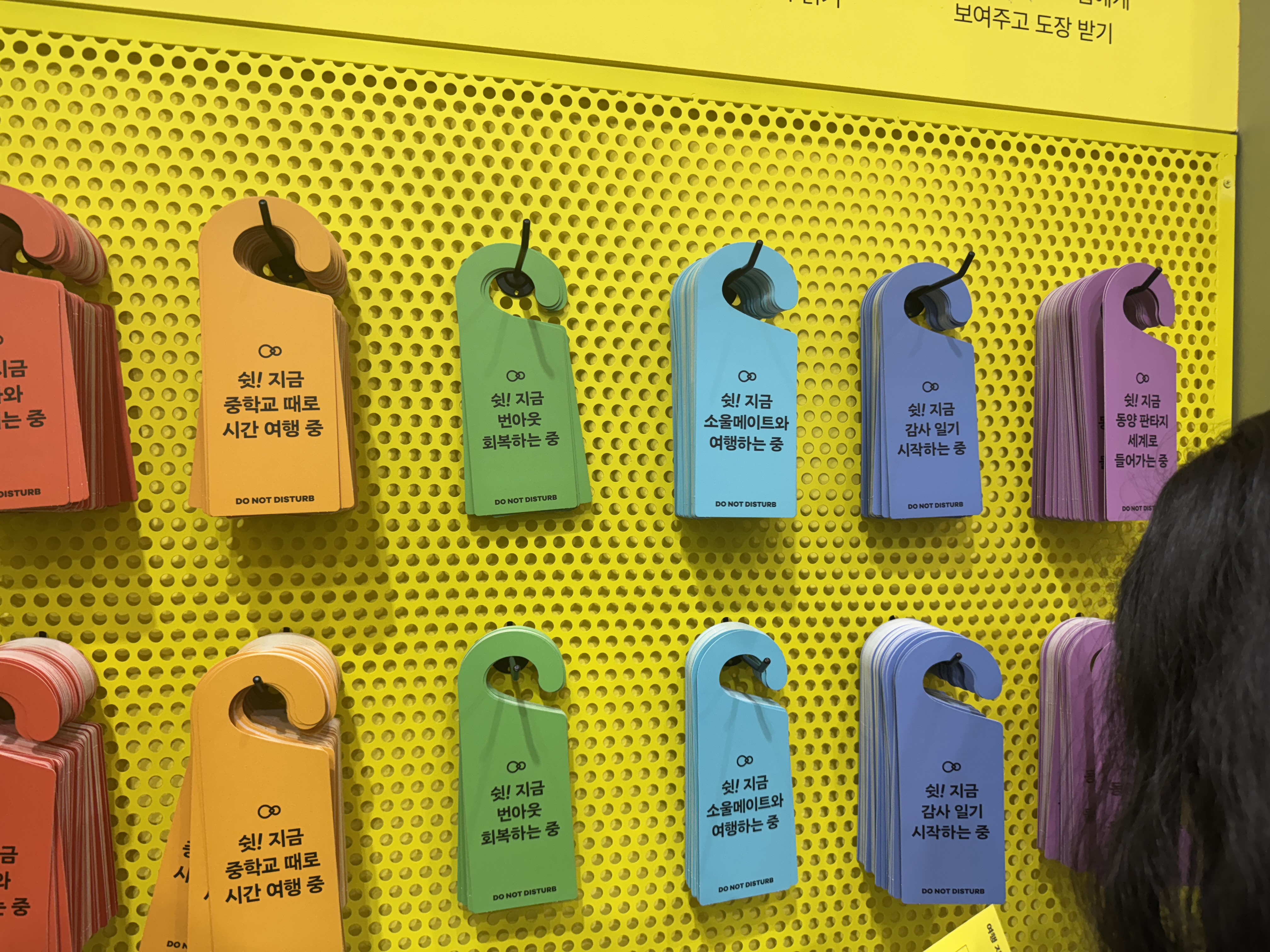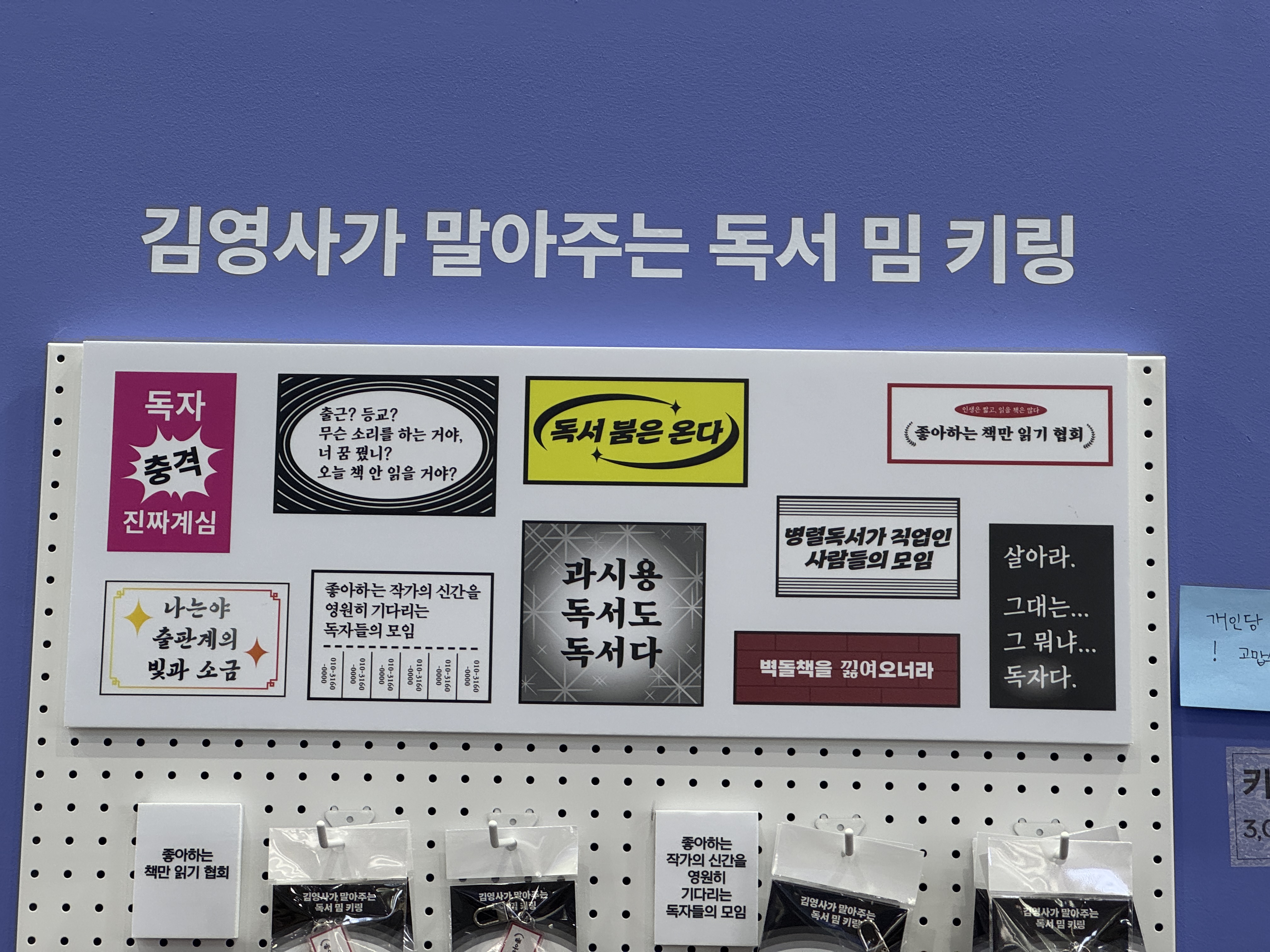 부스 외부 벽은 문장 책갈피를 가져갈 수 있게끔 전시해 두었는데, 금방금방 사라지더라구요.