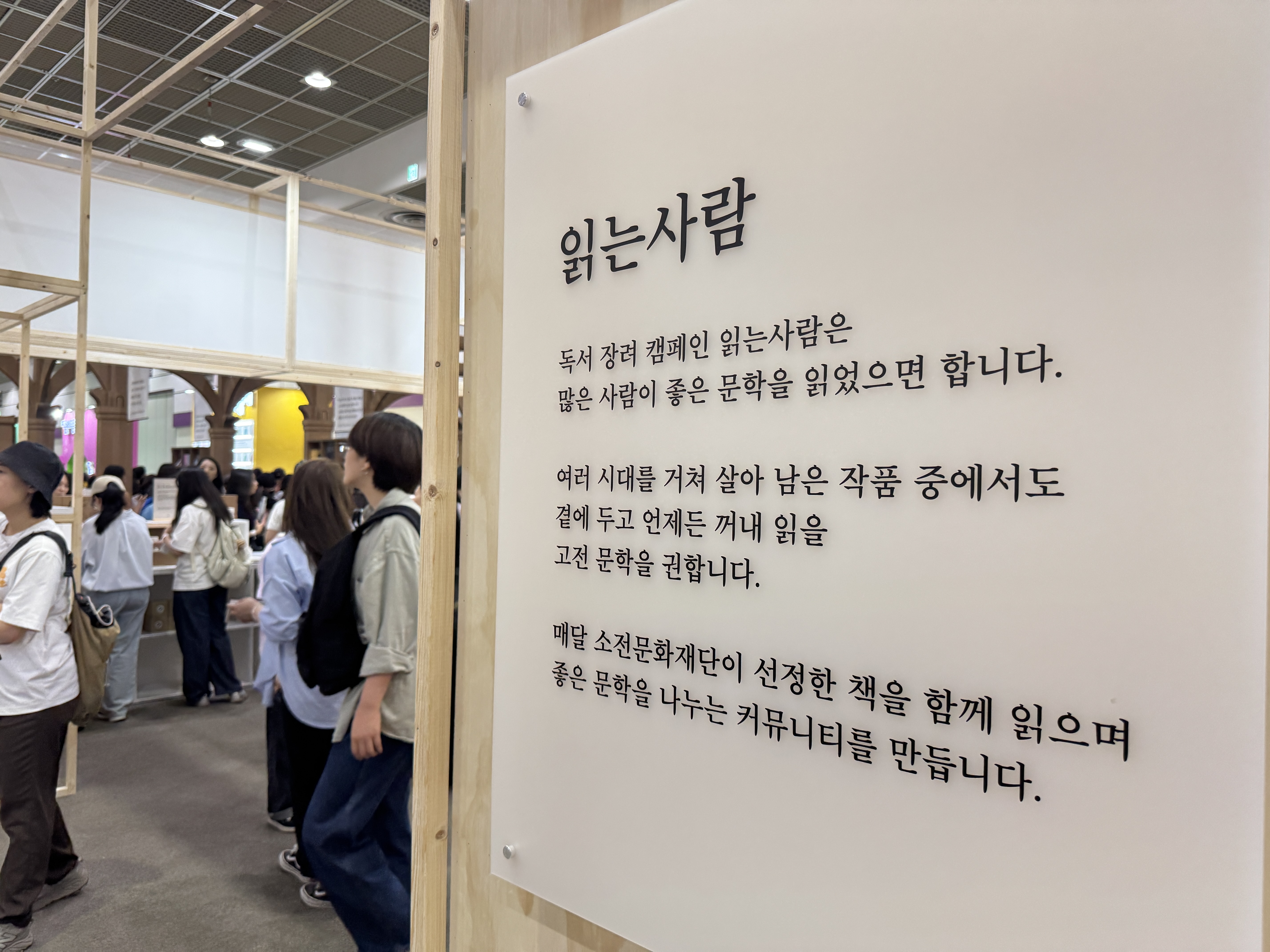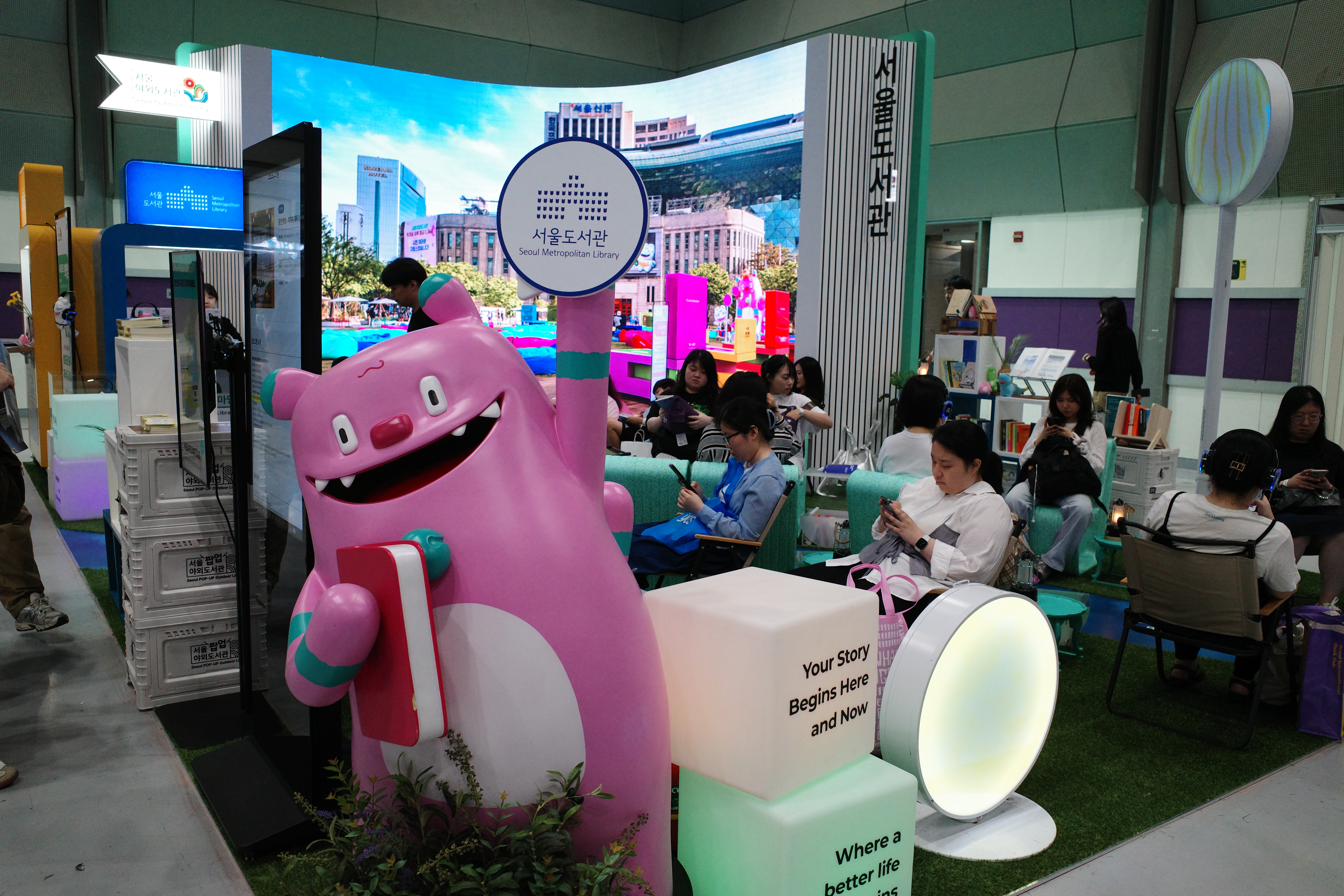 서울야외도서관 부스 서울야외도서관 부스는 의자와 헤드폰을 설치해 관람객이 편하게 앉아 책을 읽으며 ‘도심 속 야외도서관’의 분위기를 만끽할 수 있도록 했습니다. ‘사일런트 책멍’(조용히 책에 몰입하는 공간) 등 신개념 독서 체험 프로그램도 함께 운영되어 큰 호응을 얻었습니다.