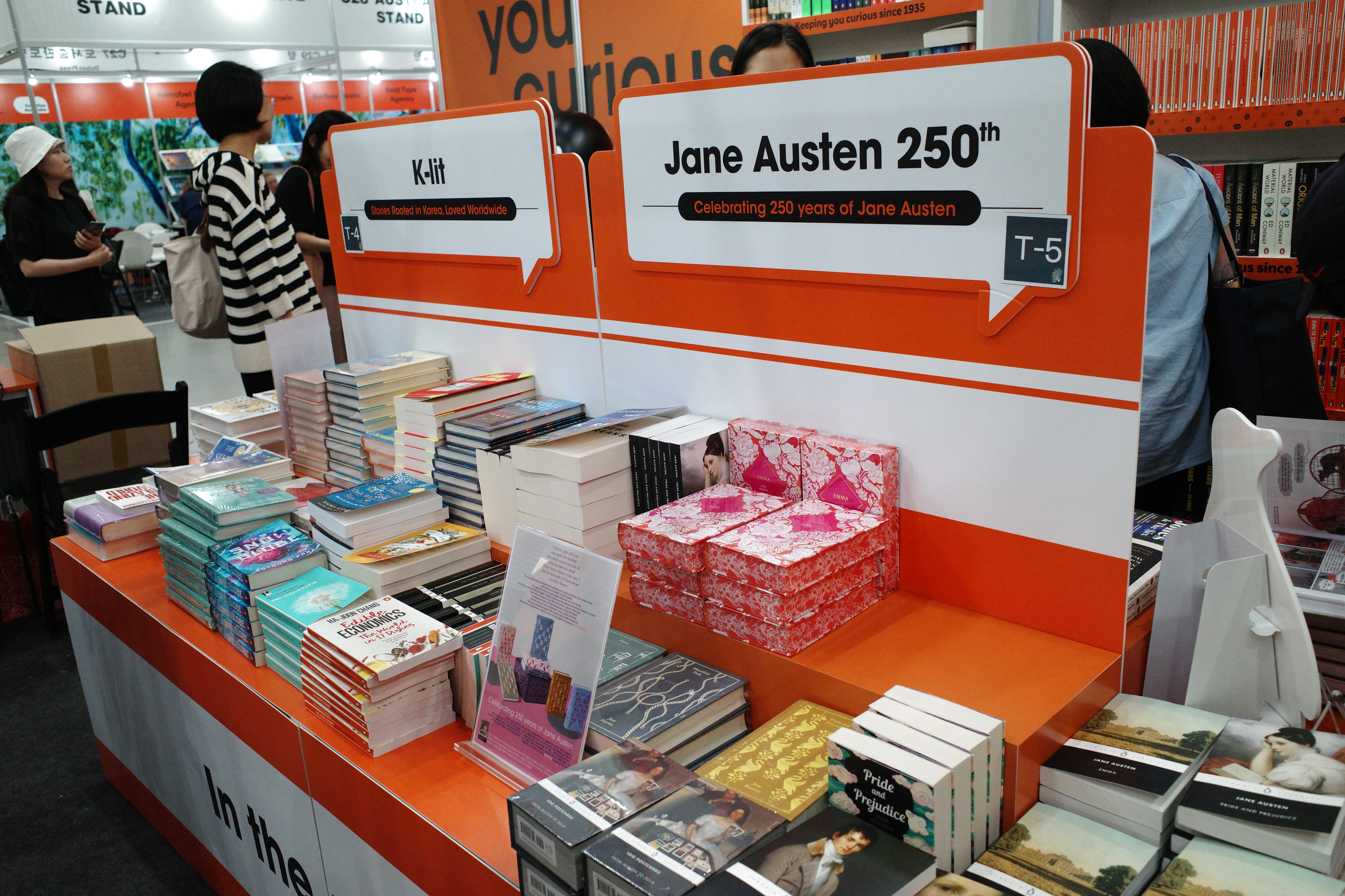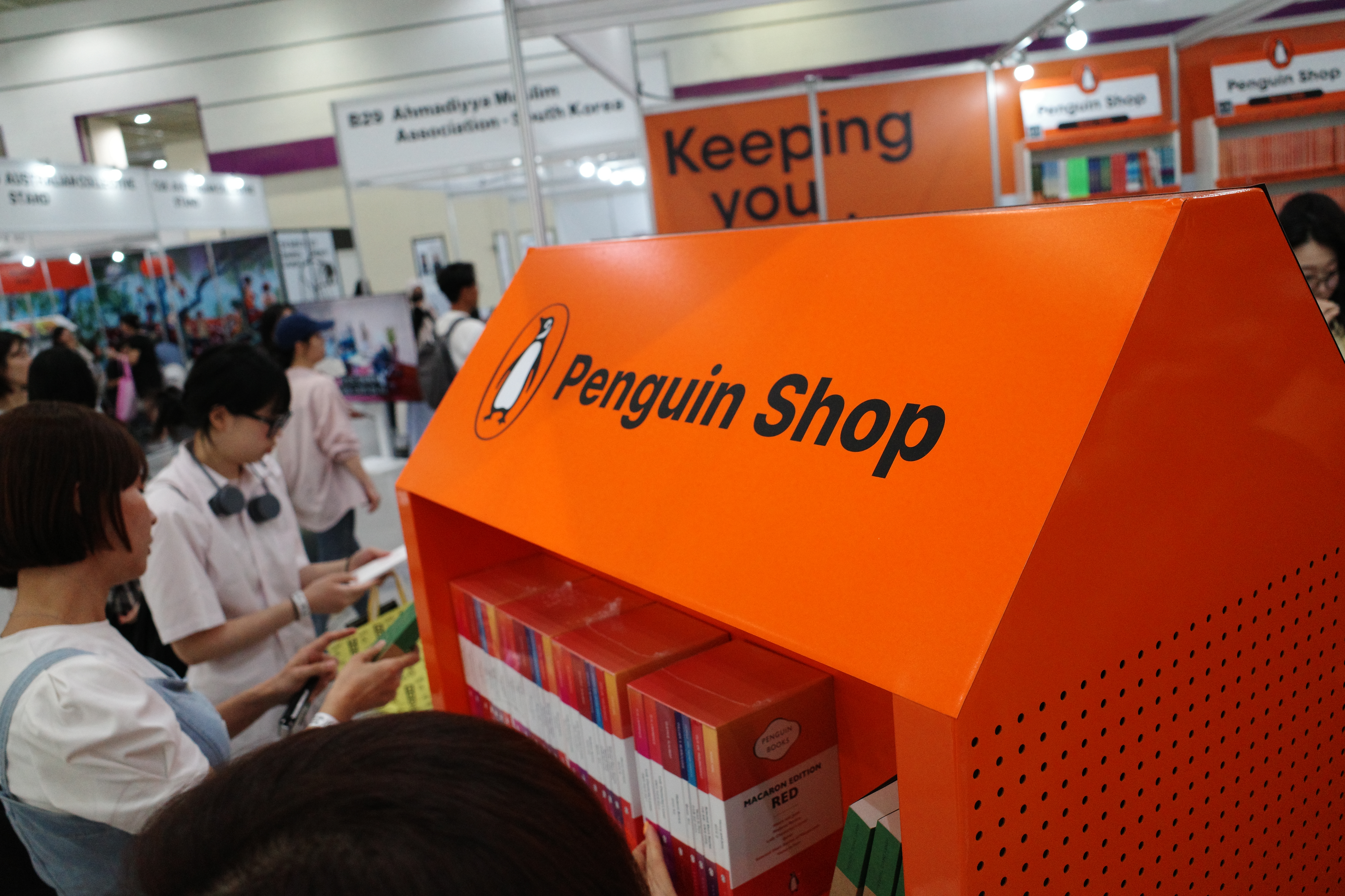 펭귄북스(Penguin Books)는 영국을 대표하는 세계적인 출판사인데요. 부스 전체를 시그니처 컬러인 오렌지로 통일해 멀리서도 단번에 눈에 띄었습니다. 대형 펭귄 마스코트 피규어가 포토존 역할을 톡톡히 해, 관람객들은 오렌지 벽면과 펭귄 캐릭터 앞에서 인증샷을 남기며 펭귄북스 특유의 유쾌하고 세련된 감성을 현장에서 직접 경험할 수 있었습니다.