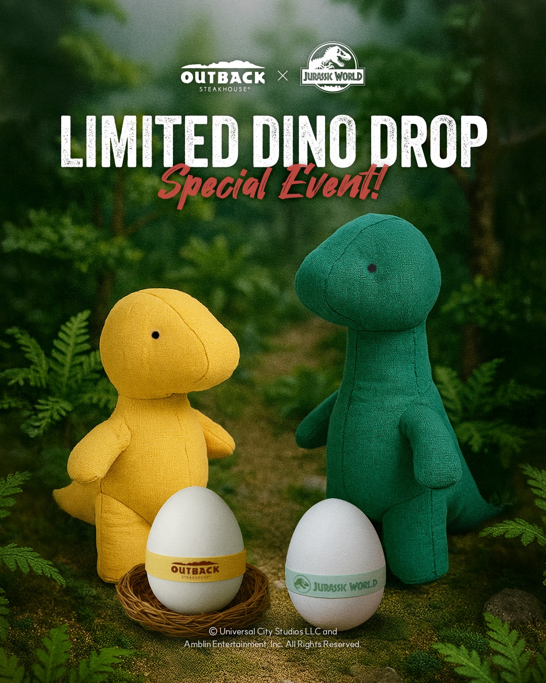 여기서 끝나지 않아요. 매장 곳곳을 공룡 분위기로 꾸며 ‘숨겨진 다이노를 찾아라’ 미션을 진행하고요. 아웃백 APP에서 공룡 DNA 수집 미션을 수행하면, 한정판 다이노 인형을 받을 수 있습니다. 공룡 세 마리의 DNA를 확보하는 게임을 통해 영화 속 세계관을 이어서 즐겨볼 수 있죠! 단순히 신메뉴 개발에서 끝나지 않고, 오프라인과 온라인을 아우르는 이벤트까지 세심하게 설계한 점이 돋보여요.