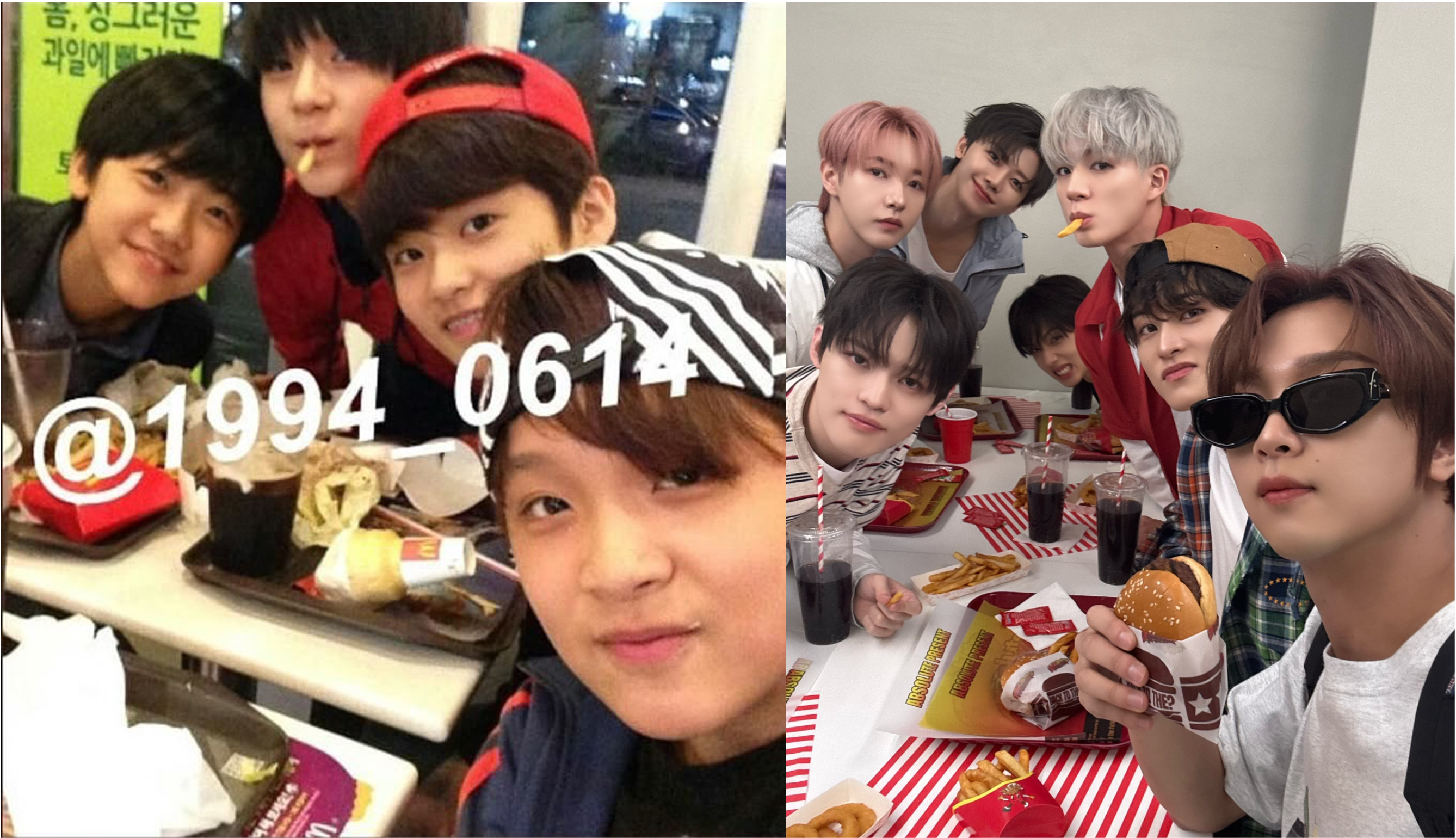 시간이 흘러 데뷔 이후의 장면도 그대로 담았습니다~ 첫 번째 브이앱 라이브 영상 배경, 자체 콘텐츠 속 명장면, 뮤직비디오 컷, 밀리언셀러 기념 장면 등 여러 순간을 똑같이 따라 했어요.