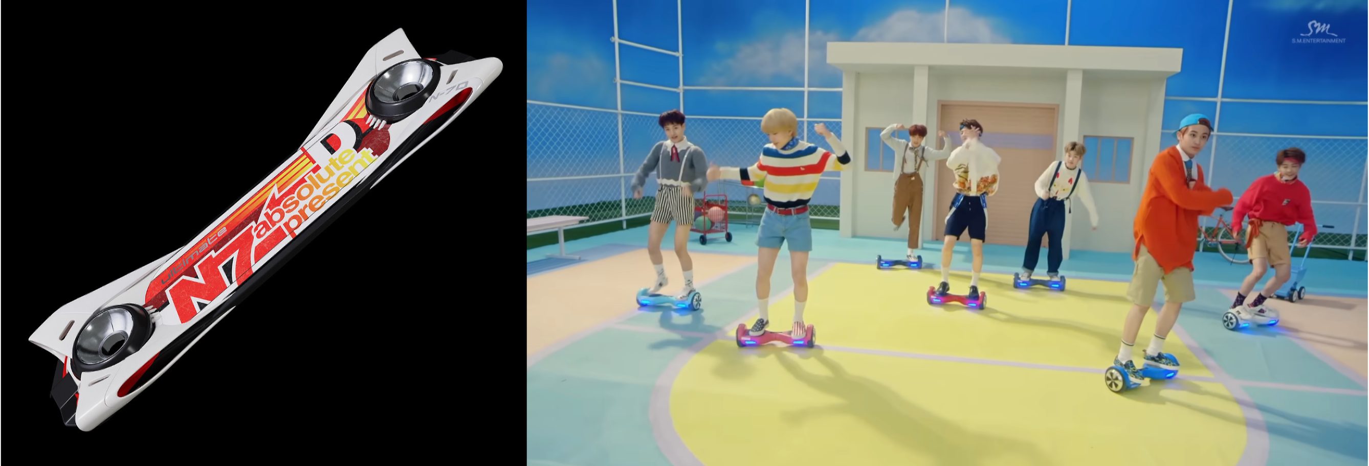 컴백을 알린 첫 번째 스포일러는 바로 ‘호버보드’ 아트워크인데요. 2016년 데뷔곡 ‘츄잉껌’에서 멤버들이 안무에 활용했던 그 호버보드입니다.
