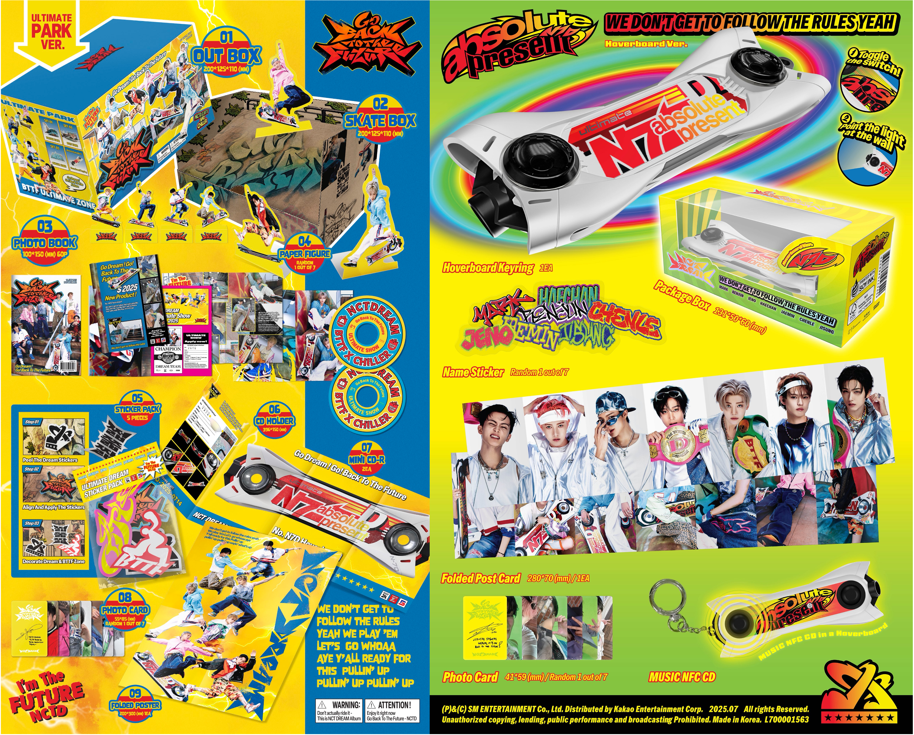 이번 전시회와 팝업스토어에서는 다양한 MD를 판매하는데, 고능한 미감에 많은 팬들이 긍정적인 반응을 보였습니다. 그리고 엔시티 드림 역시 다른 아이돌 그룹처럼 독특한 앨범을 판매하고 있는데요~ 시간 여행의 상징인 호버보드 앨범, 그리고 스케이트 파크 버전 앨범도 있죠!
