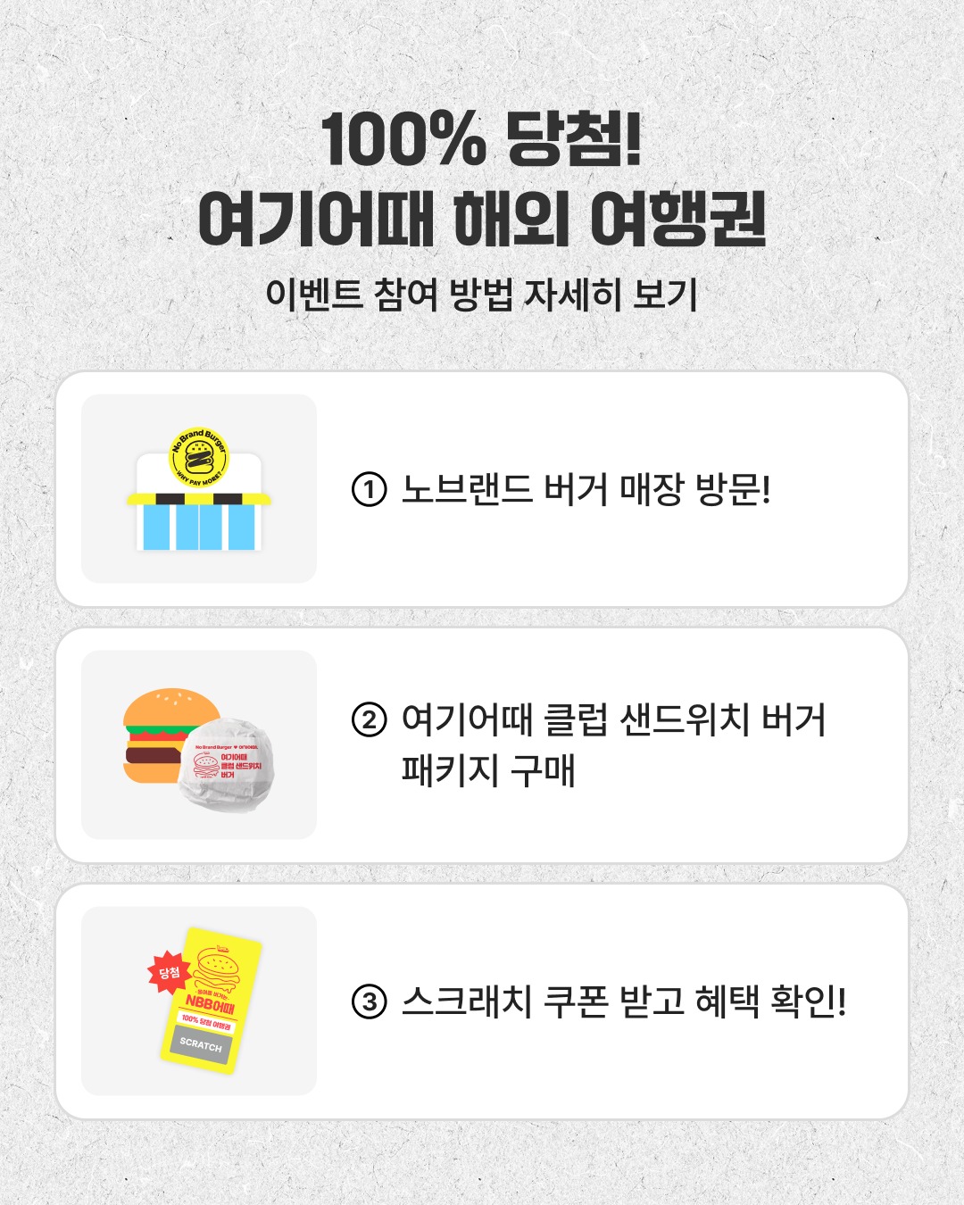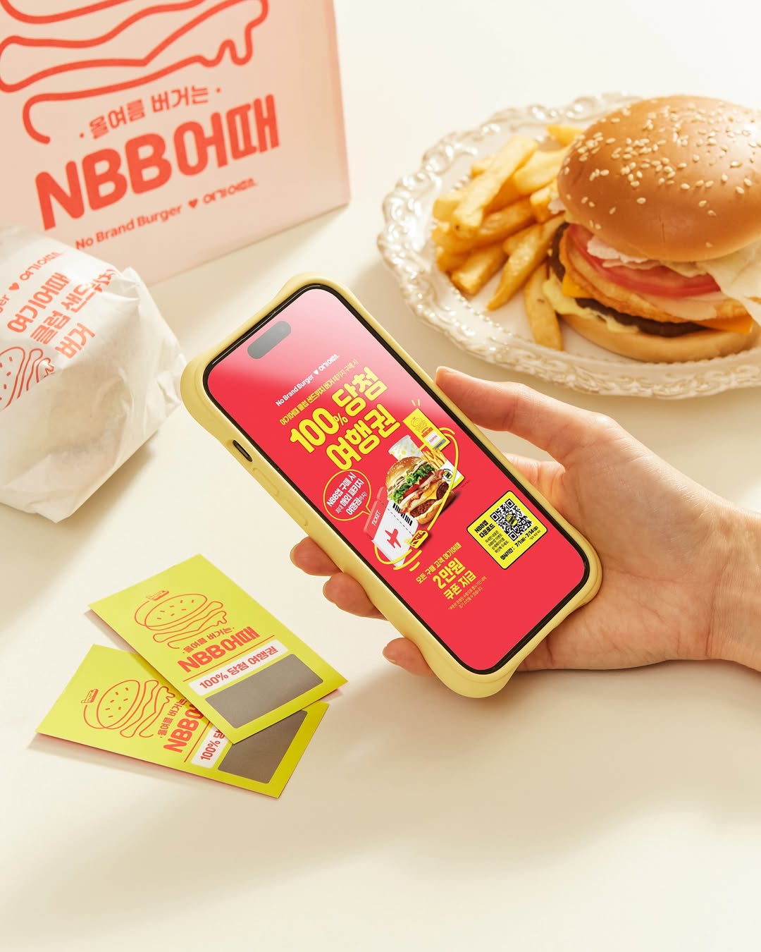 여기에 콜라보 전용 햄버거 세트의 '100% 당첨 스크래치 쿠폰'이 핵심 역할을 합니다. 이 쿠폰은 단순한 재미를 넘어, 여행 앱을 실제로 열어보게 만드는 구체적인 '행동의 계기'를 제공하죠. 여러 여행 플랫폼 중에서도 '여기어때'를 먼저 떠올리게 만드는 브랜딩 전략으로 해석됩니다.