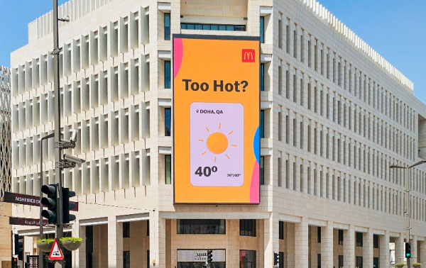 2024년 맥도날드 카타르의 서머 쿨러스 캠페인은 이런 심리를 꿰뚫은 광고입니다. 맥도날드는 디지털 옥외 광고 게시판에 실시간으로 기온을 알려주는 화면을 띄웠는데요. (사막 환경의 카타르답게 무려 40도!) 지금 기온과 함께 “너무 덥죠?”라는 한마디를 건넨 후, 맥도날드의 여름 음료 화면으로 넘어갑니다. 정말이지 이보다 더 강력한 메시지는 없을 것 같네요.