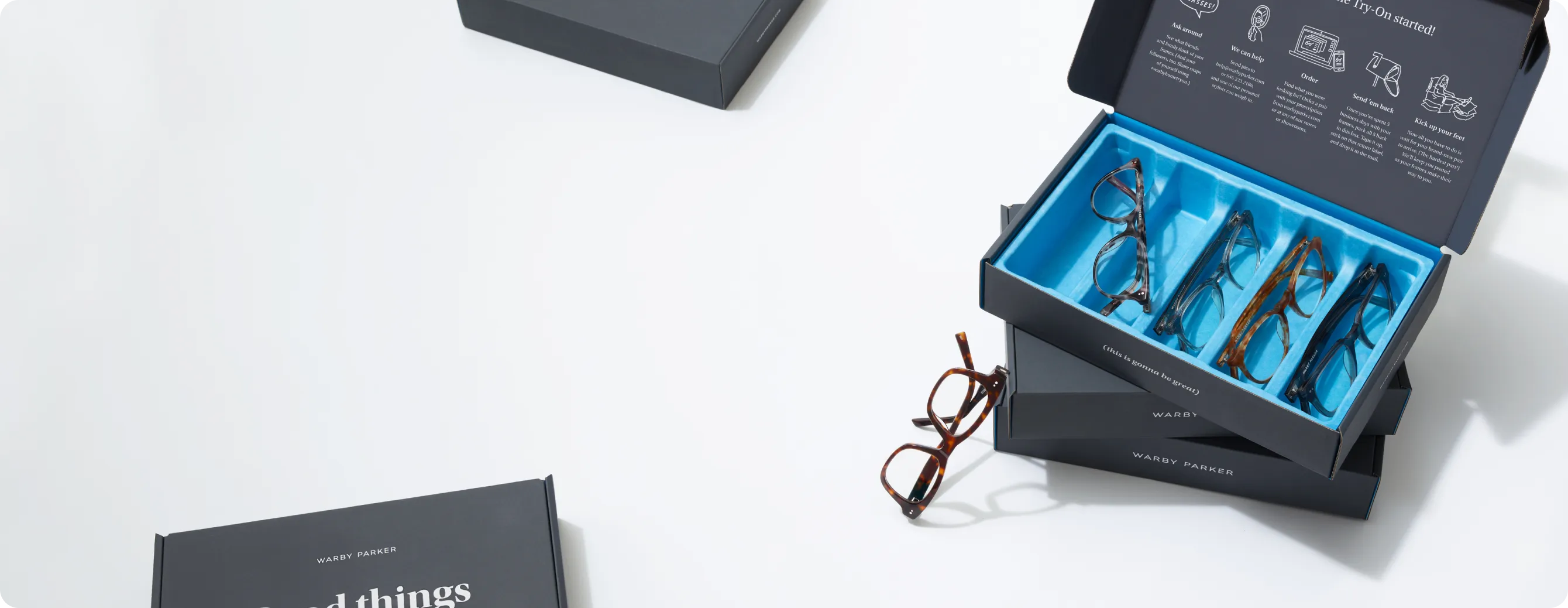 그리고 이러한 전략의 정점에는 안경 브랜드 와비 파커(Warby Parker)의 ‘홈 트라이 온(Home Try-On)’ 서비스가 있습니다. 고객이 선택한 최대 5개의 안경테를 집으로 무료 배송해 고객이 편안하게 착용해 보고 결정하게 하는 서비스입니다. 잘 모르겠다면 '스타일 퀴즈'나 AI를 활용한 얼굴형 분석 등을 통해 어울리는 안경테를 추천받을 수도 있습니다.