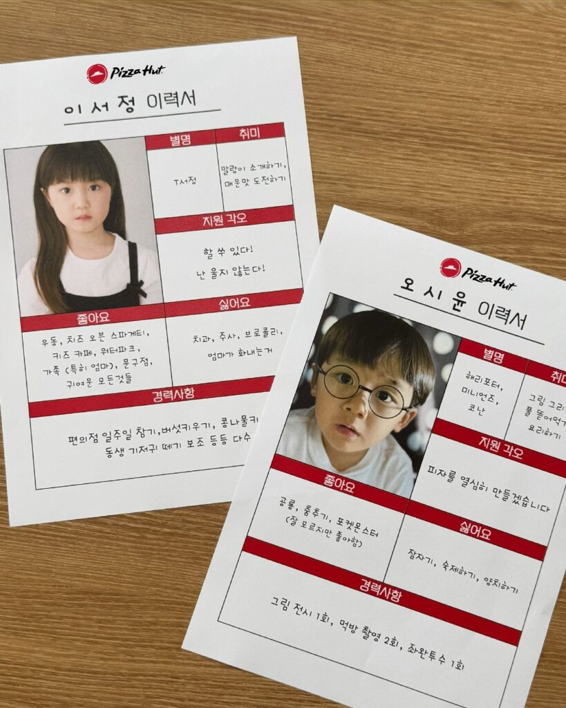 공고가 공개되자마자 곧바로 합격자 이력서가 업로드되며 내정자가 있음이 밝혀졌습니다. 피자헛의 신입사원은 바로 키즈 크리에이터 서정 양과 시윤 군이었는데요. 서정 양은 ‘편의점 안 가기 일주일 챌린지’로, 시윤 군은 ‘인생 첫 콜라 시음’ 영상으로 이미 많은 이모, 삼촌 팬 마음을 사로잡은 어린이 크리에이터입니다.