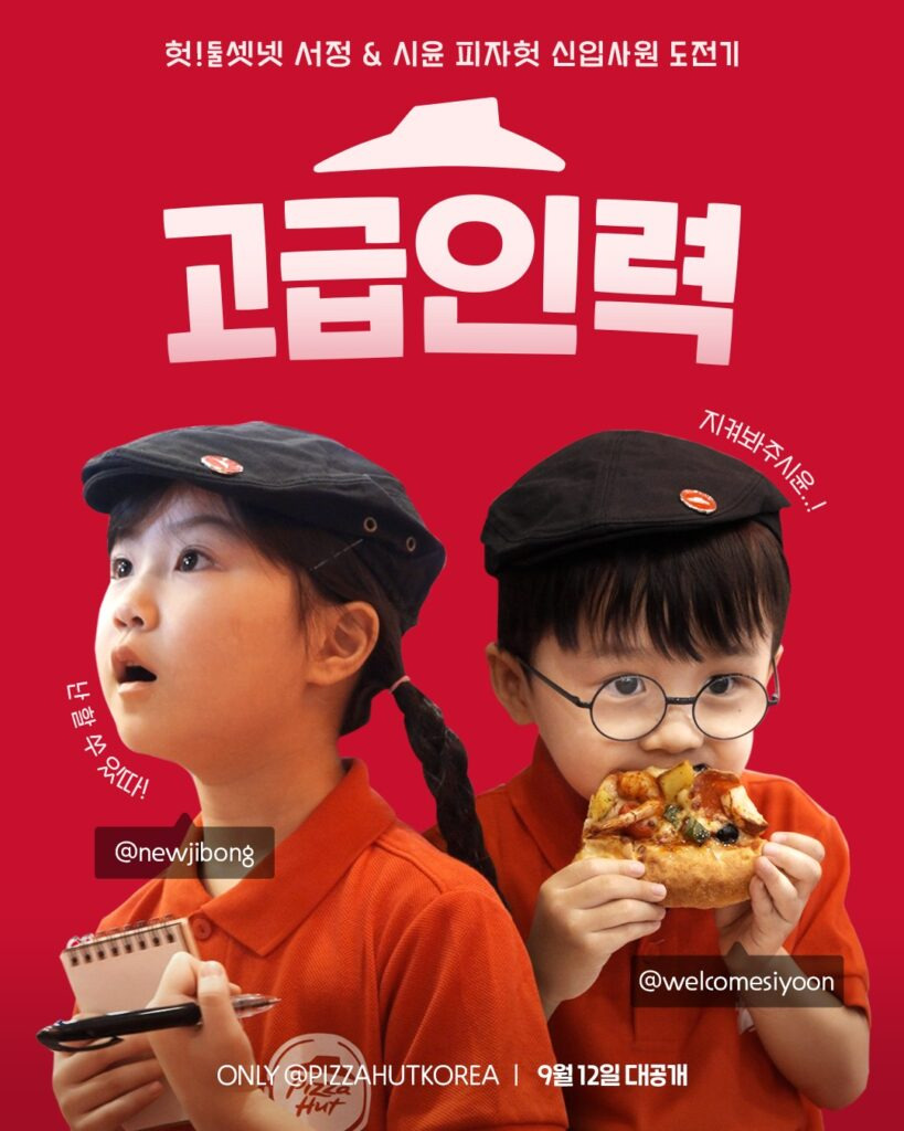두 어린이는 피자헛 신입사원이라는 부캐로 활동하며 페이크 다큐멘터리 형식의 콘텐츠에 참여했는데요.